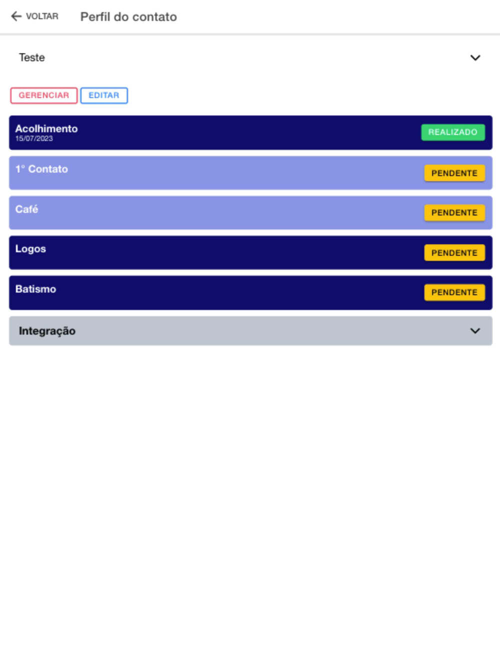 Acompanhe a integração da pessoa com a igreja após o acolhimento.