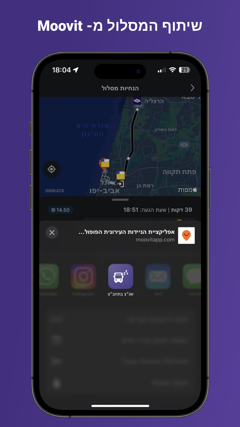 - Integration with Moovit - sharing the route from Moovit to the SNS in שנצ בתחבצ will automatically set an alarm clock for the stations where you get off.