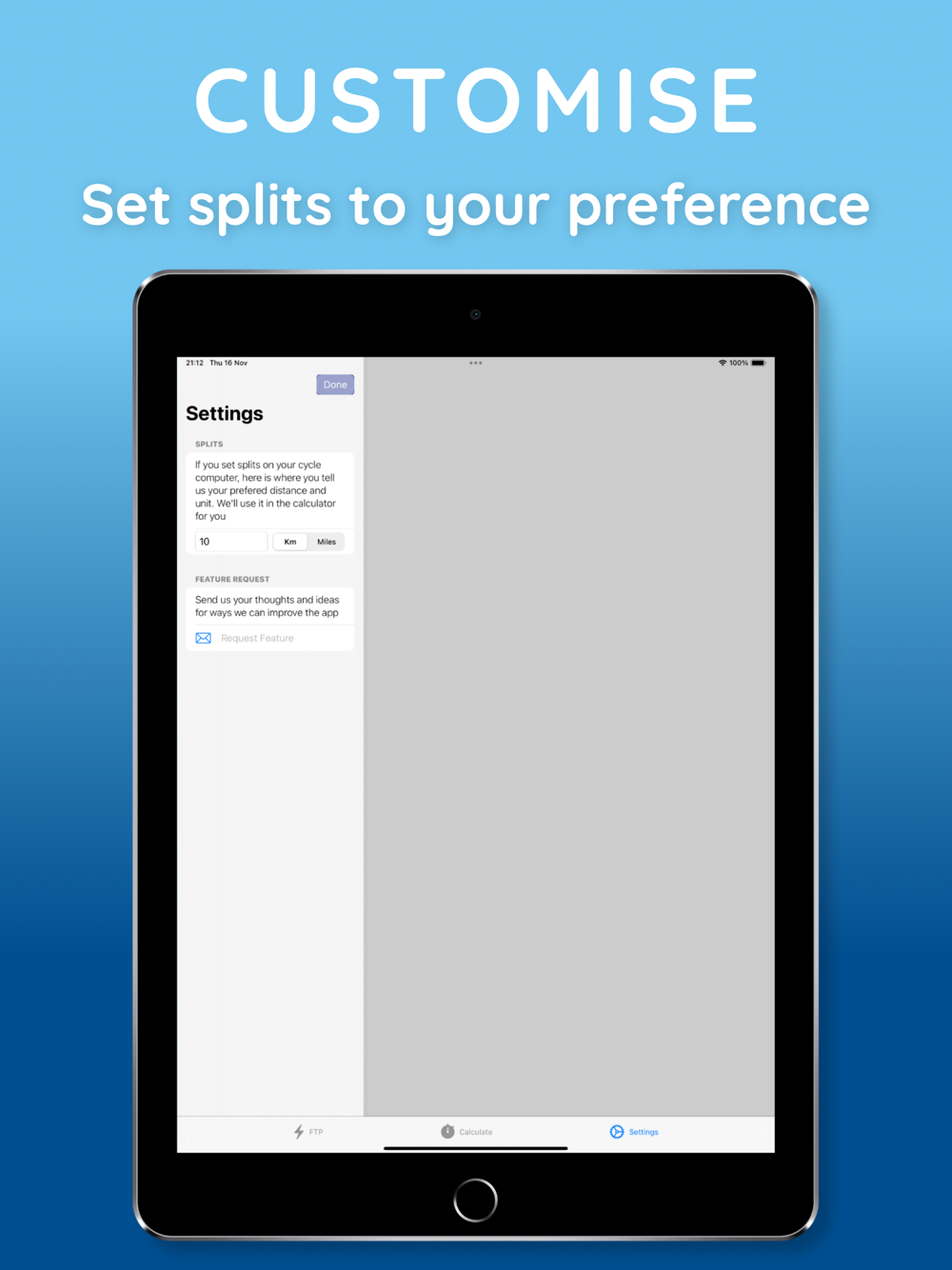 A straight forward, easy to use app, that gives you your key numbers to focus on in the race as well as a convenient planning took for multi-sport athletes that want to calculate the duration of the bike leg as you create your pre-race plan. I wrote this app for myself… I race in Triathlon and TT. I wanted a no fuss quick way to do unit conversion as well as estimate my finish times and know what split time I am supposed to hit. FTP came along because I wanted to more easily visualise trends and don’t like to be locked into the expensive training platforms I subscribe to.
