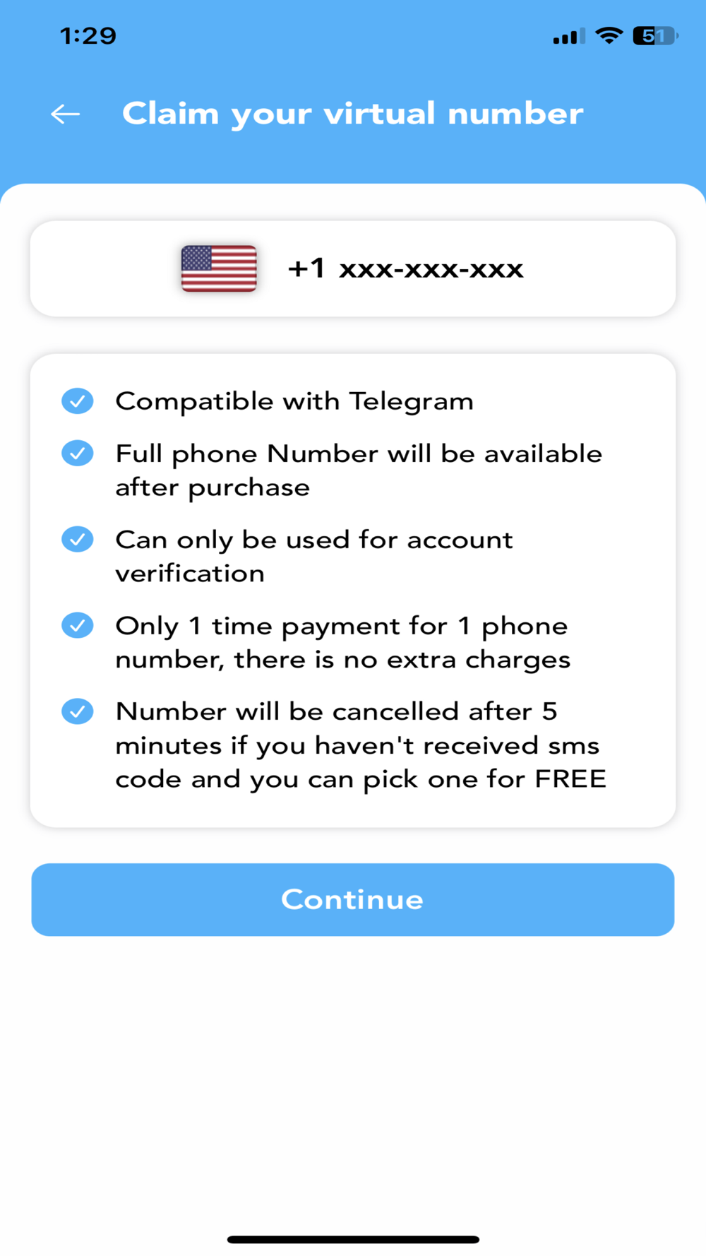1. Use rSim to get a phone number compatible with Telegram.