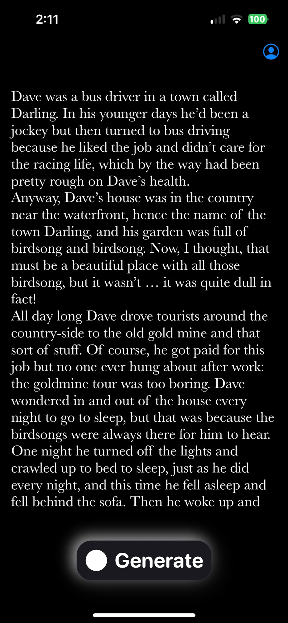 This app uses AI to generate text locally on device. All the processing power of the local device is used to generate text. You can use the app to generate any amount of text blocks, or you can use it to finish any sentence or paragraph. Does not require an internet connection.