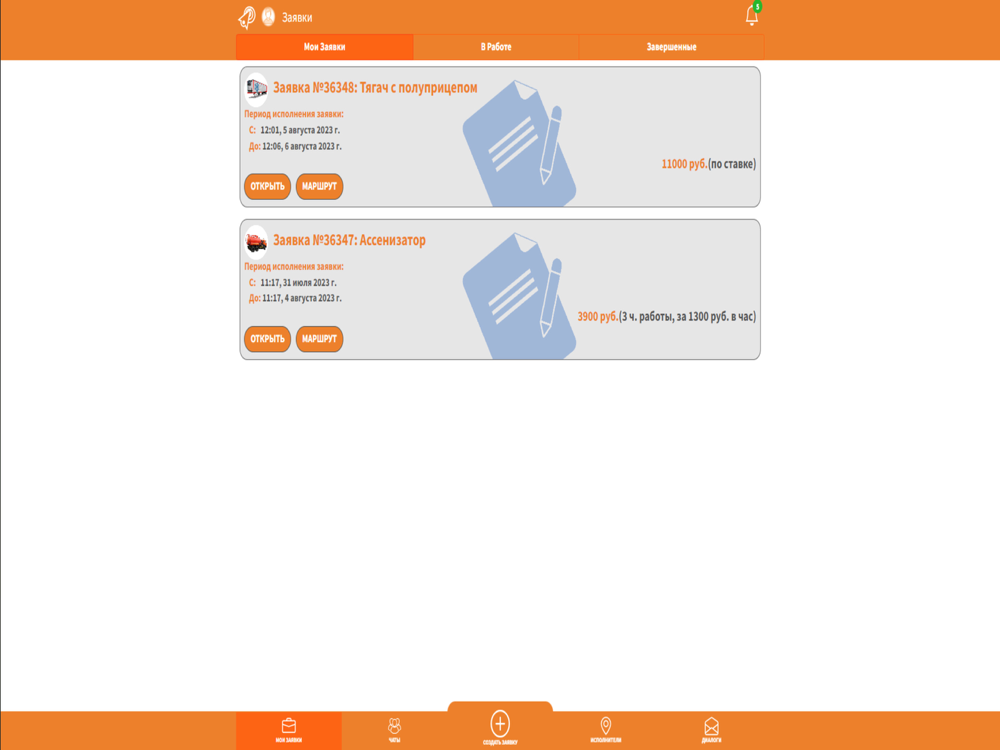 Для исполнителей доступны формирования сопроводительных документов, отсчетов, отслеживание маршрутов и расхода топлива.