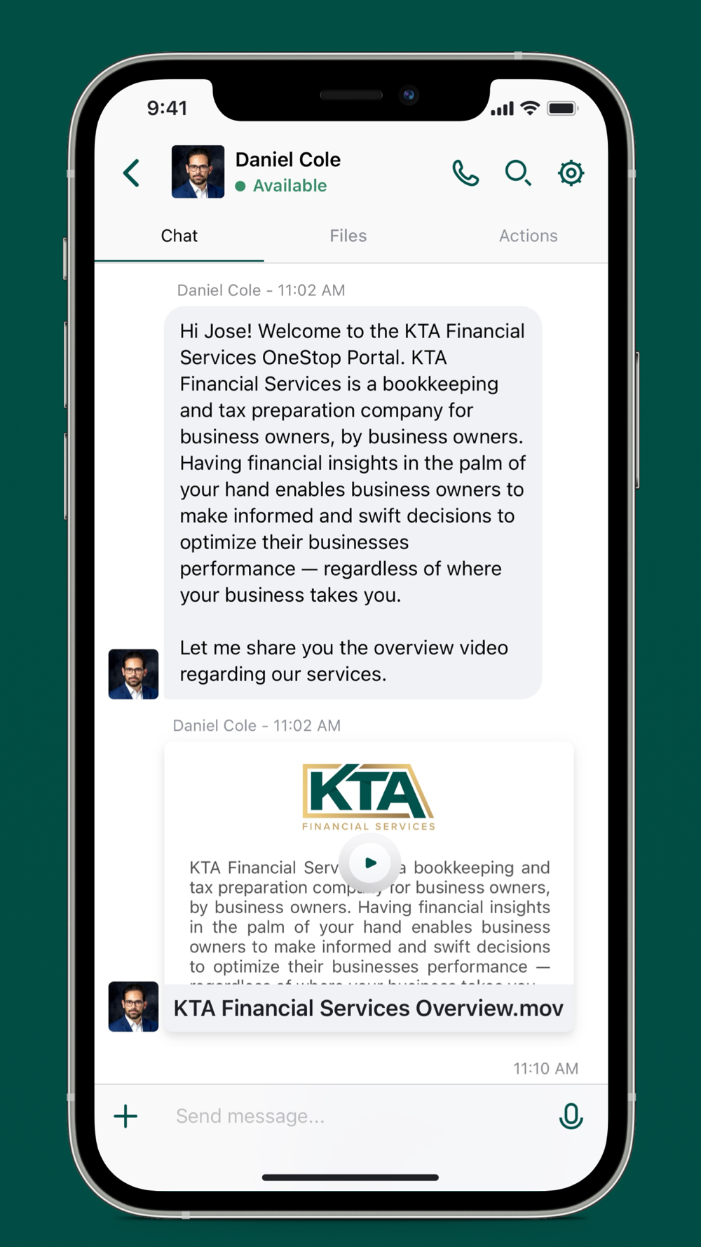 Download the KTA Financial Services mobile app to access your financial statements, upload documentation, receive important notifications, and collaborate in real time with our world class accounting team. Our app supports secure messaging, video meetings, document sharing, digital signature, and more capabilities for a seamless financial services experience from your mobile device.