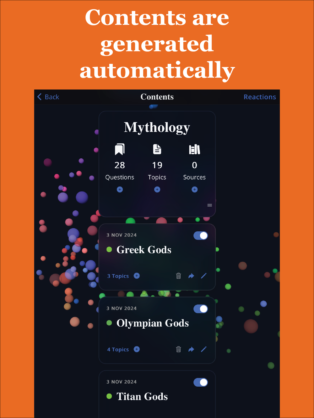 Mythology, Critical Thinking, Quantum Mechanics, AI, Roman Empire, Climate, Empathy, Nutrition, Art History, Space Exploration, and beyond. Learn any topic you like.