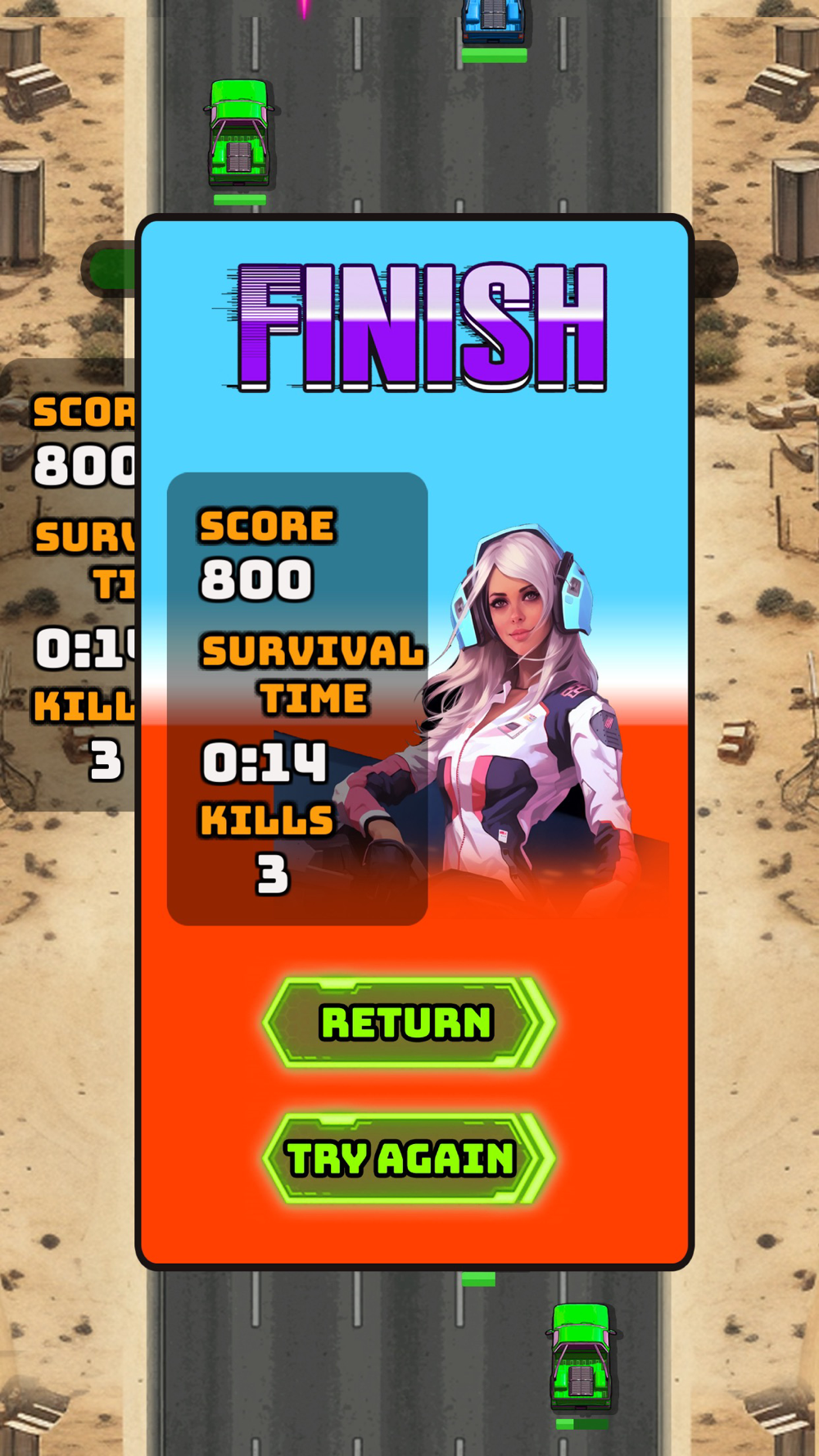3. Shoot Bullets to Eliminate Enemies: Dodging enemy attacks is not enough; you can also fire bullets from your car to counter-attack! Aim at your opponents, release your weapons, and take down all obstacles in your path.