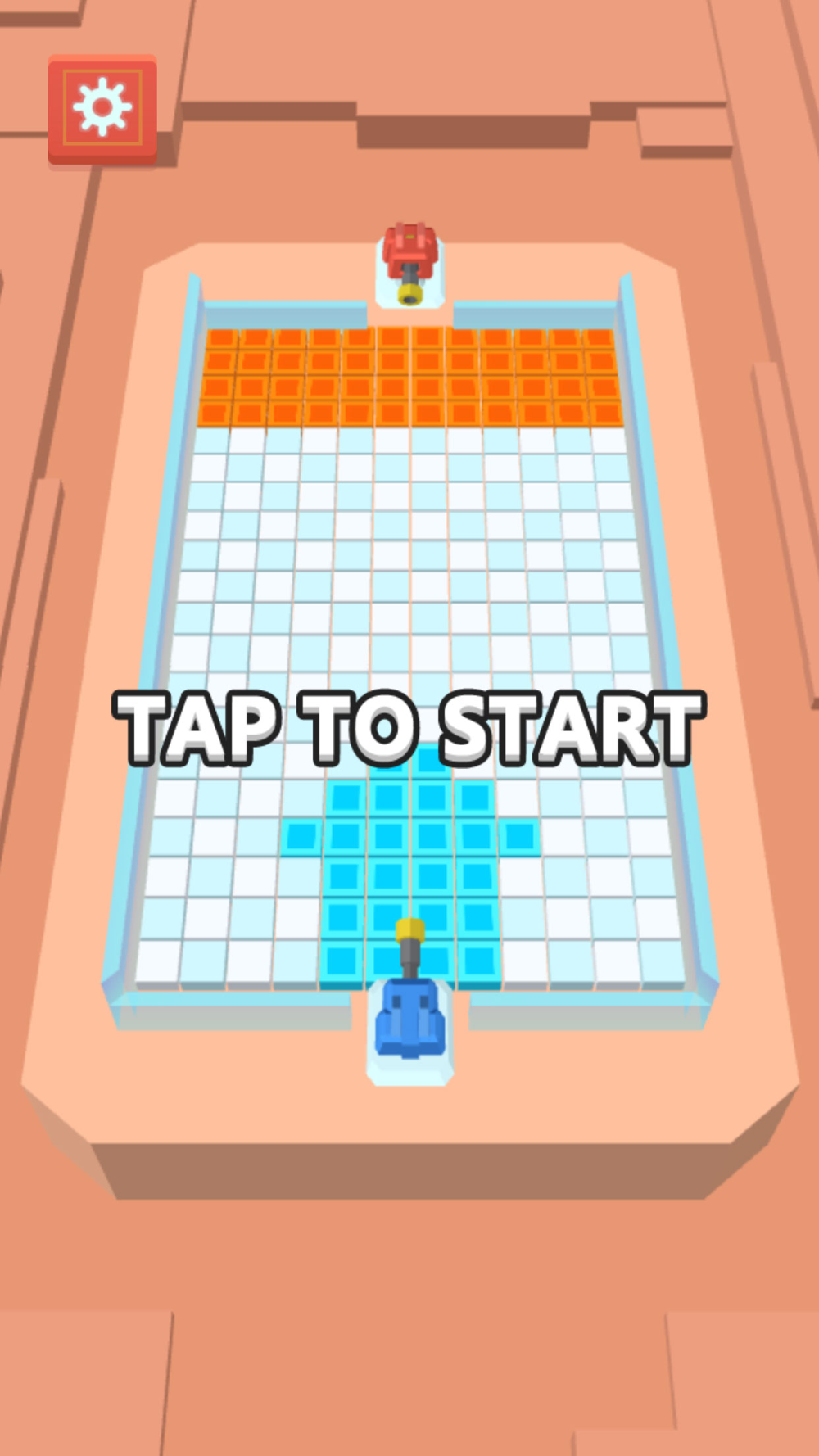 在一個由方塊組成的虛擬空間中,兩位玩家將操作各自的炮臺進行戰鬥,爭奪控制權。