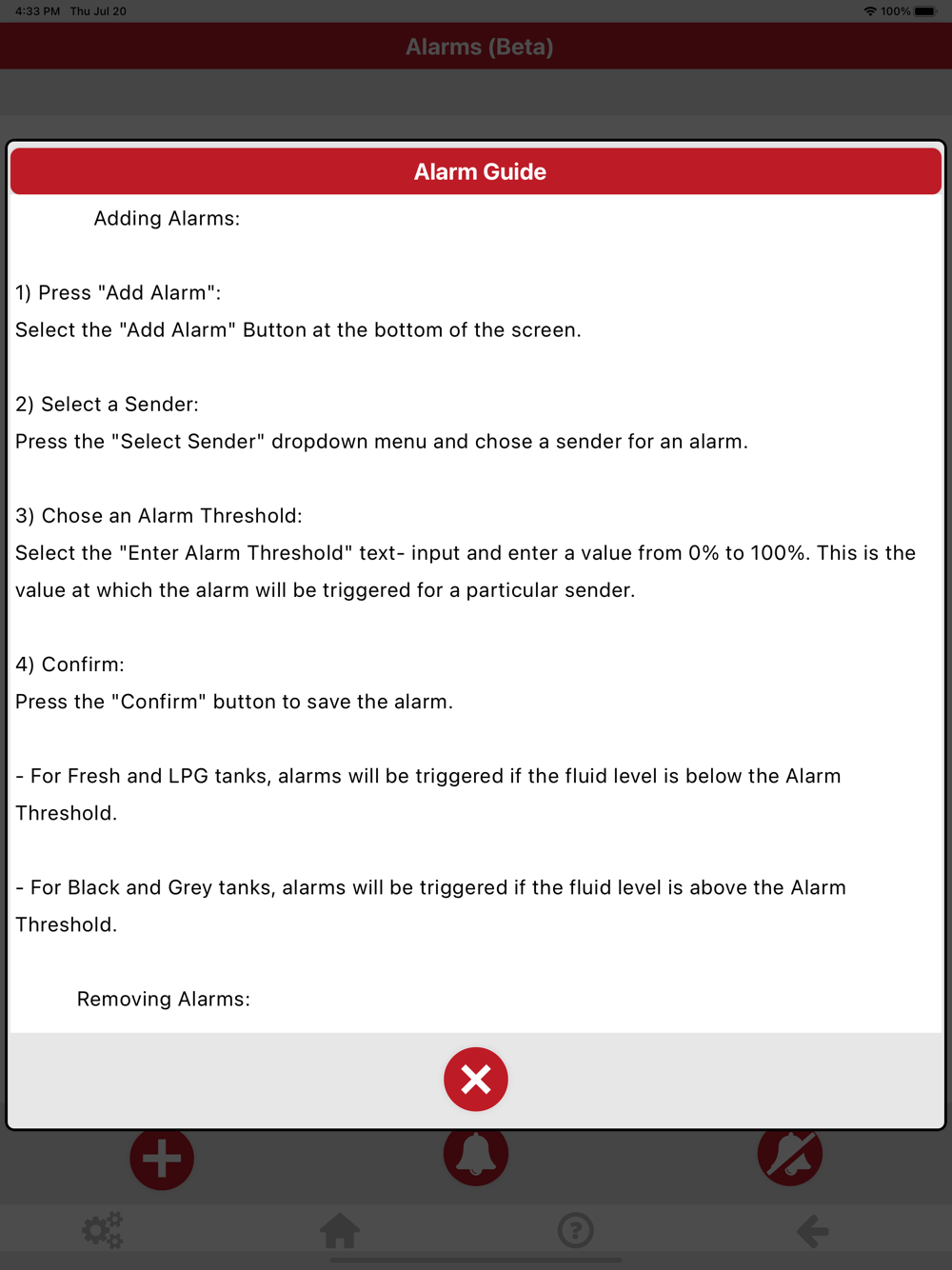 One of the standout features of SeeLeveL RV 2.0 is the comprehensive alarm system. Set up customizable alarms for low and high tank levels, receiving timely notifications when attention is required. Say goodbye to unexpected water shortages or messy overflows. Stay proactive and maintain optimal tank levels for a worry-free RV experience.