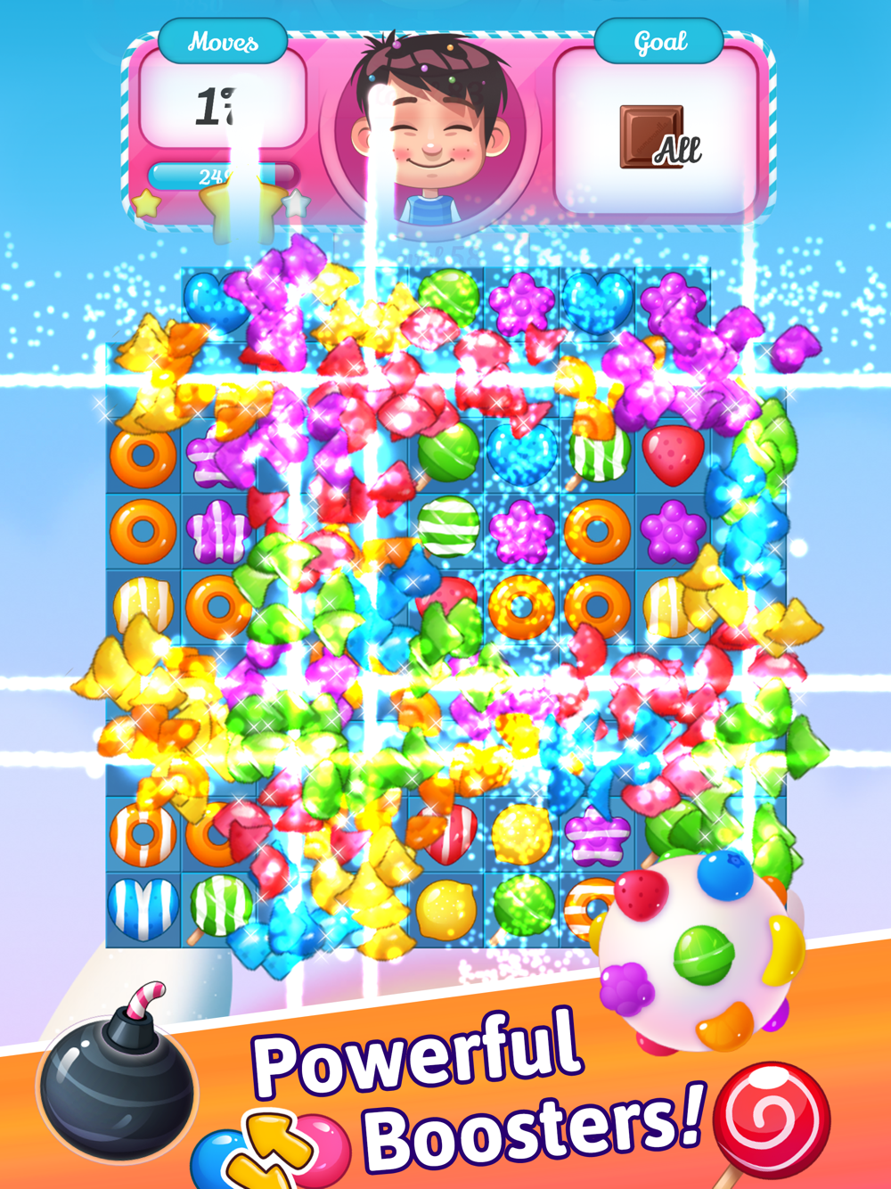 - Hammer, Lollipop, Color Bomb and Swap will give you another chance to Win!