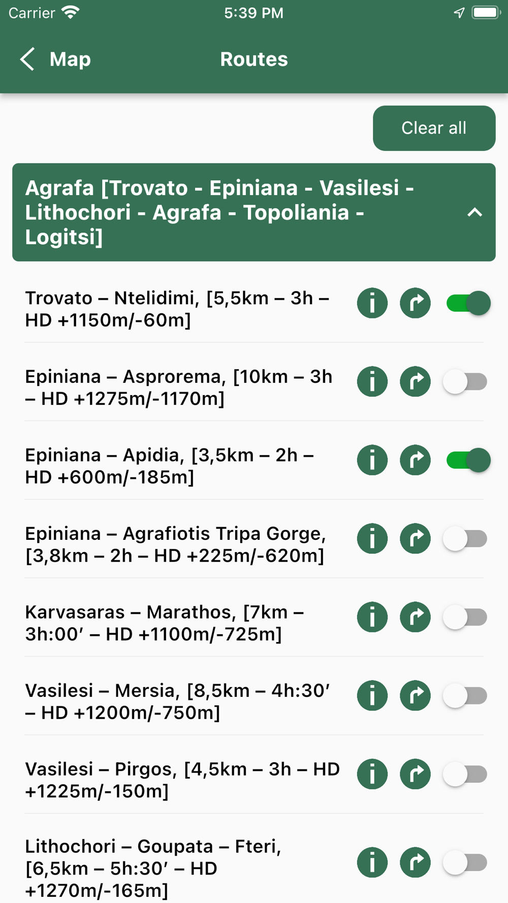 The Evrytania's Trails app is an offline application that shows the user position on the map without the need for mobile phone signal. It also works in flight mode. It is necessary to have the location activated on our mobile phone. Include suggested routes with description and fotos