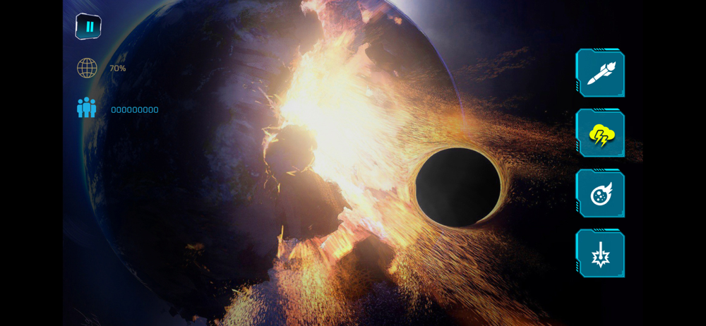 Choose Your Weapons: Unleash a wide array of cosmic weapons , missiles, and tools to unleash destruction on a planetary scale. Create massive fissures, explosive eruptions, and colossal tsunamis to obliterate everything in your path. Customize your attack and find the most efficient way to erase life from these alien worlds.