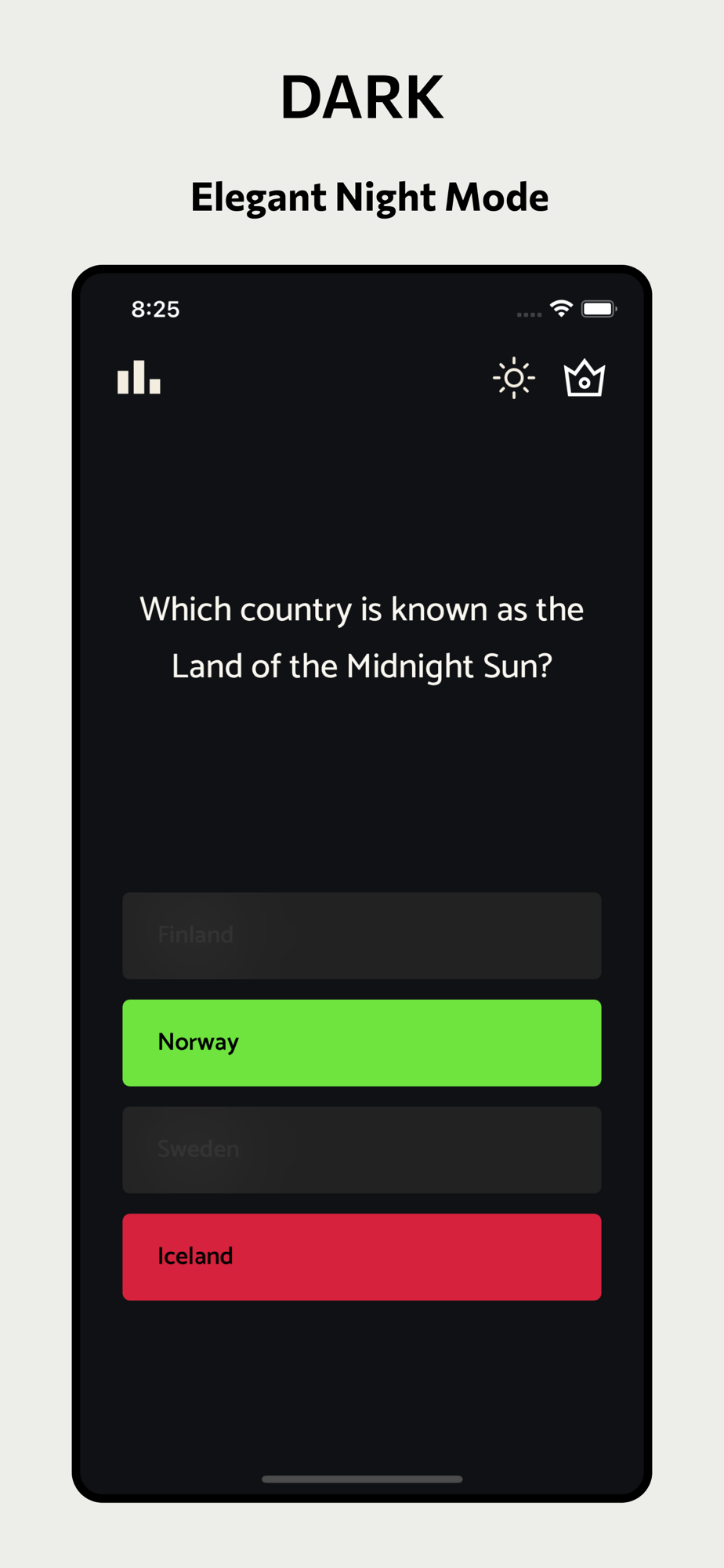 In the Standard mode, dive into a world of 200 thought-provoking general knowledge questions. Test your grasp of history, science, literature, pop culture, and much more. Challenge yourself with a mix of easy, medium, and hard questions to keep the excitement alive. Whether you're a trivia novice or an expert, QuizPedia's Standard mode has something for everyone!