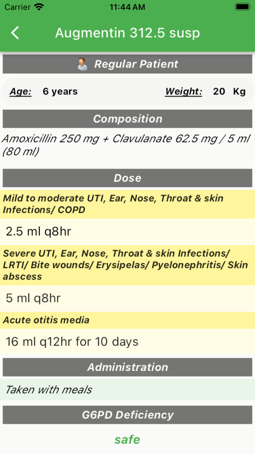 Compatibility with G6PD deficiency