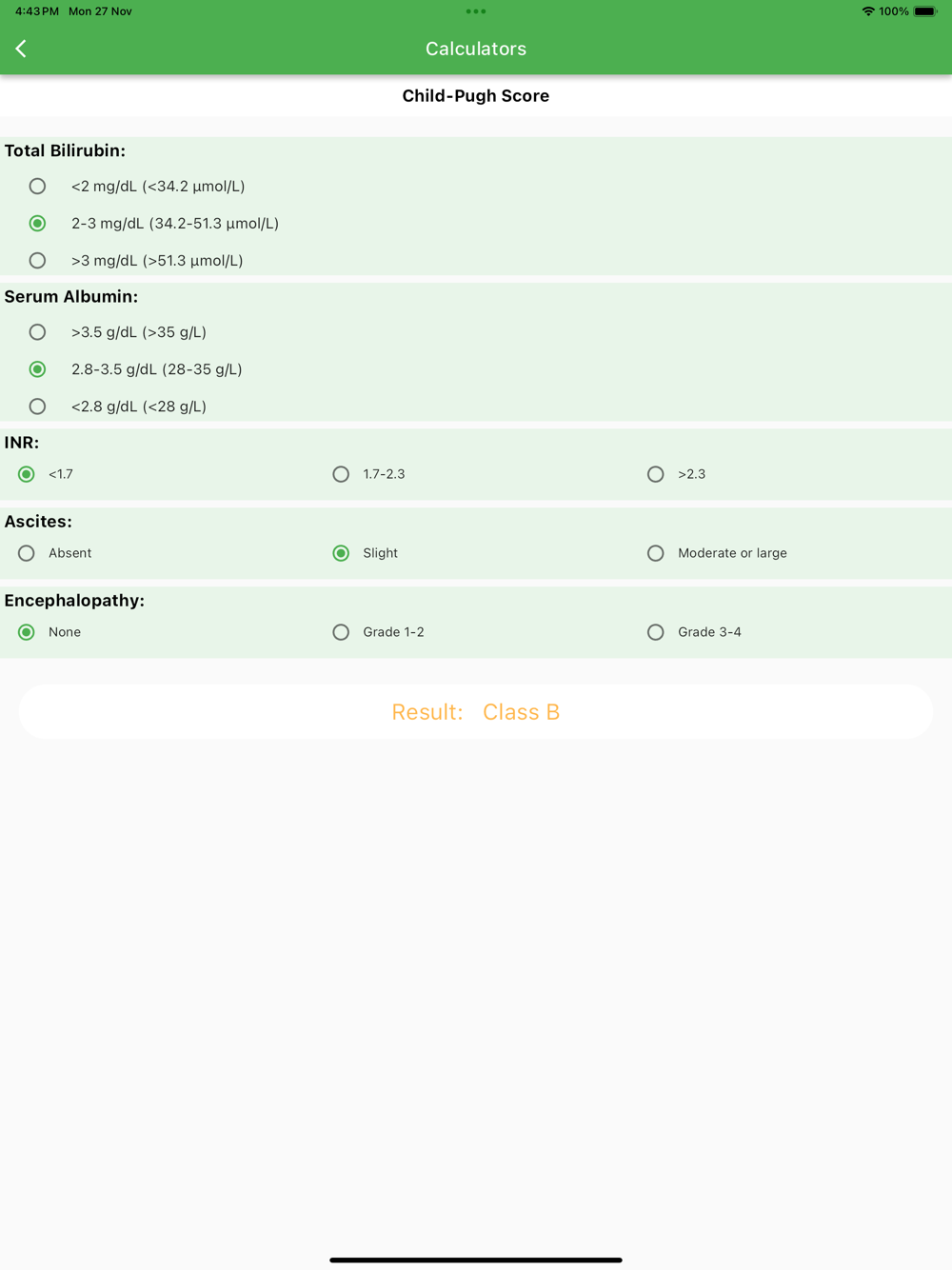 Child-Pugh Score for liver cirrhosis