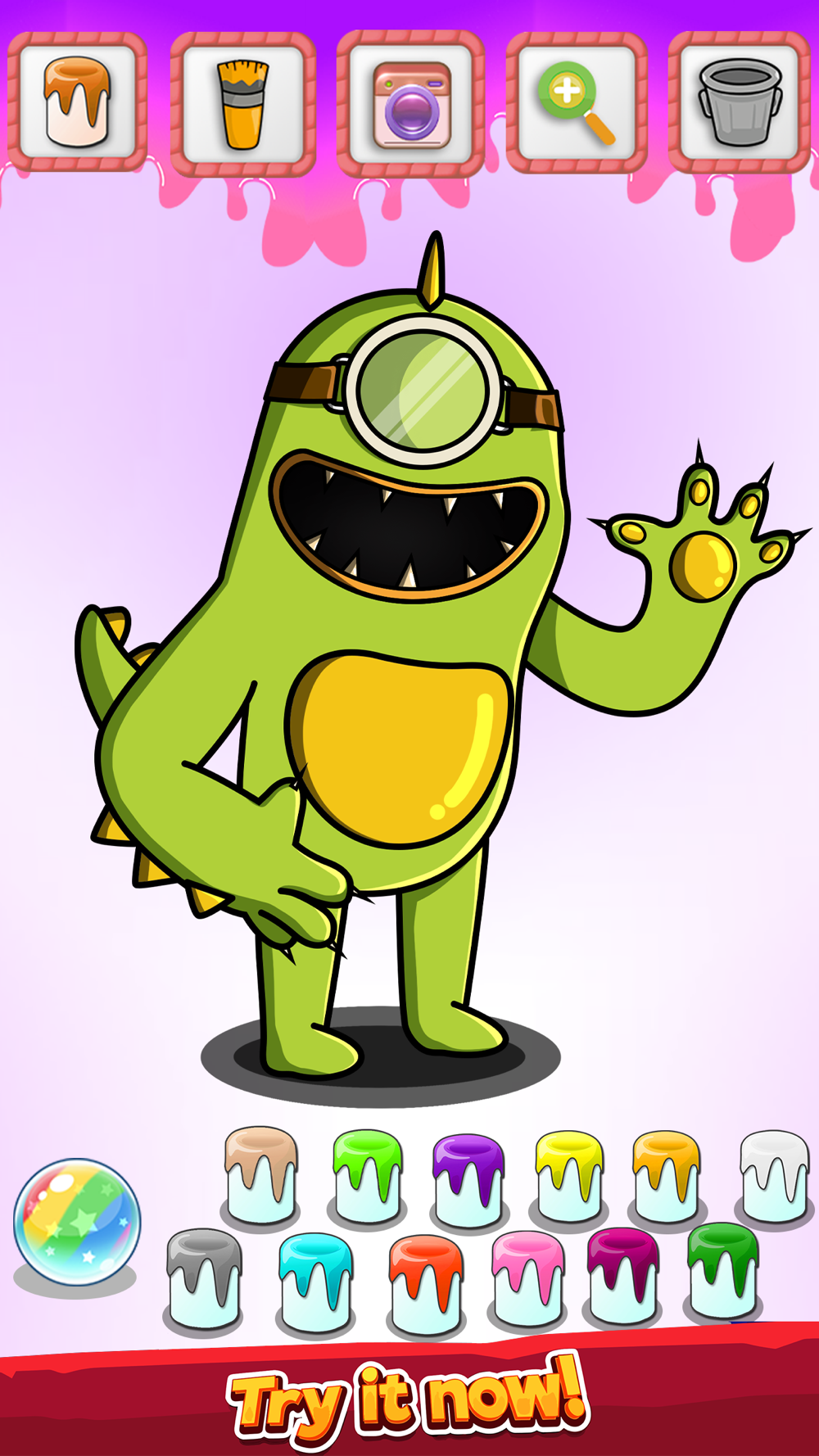 • Choose from dozens of colors for various brushes, pencils and markers. You can also use different stickers and sprays and color bucket to fill in the blanks.