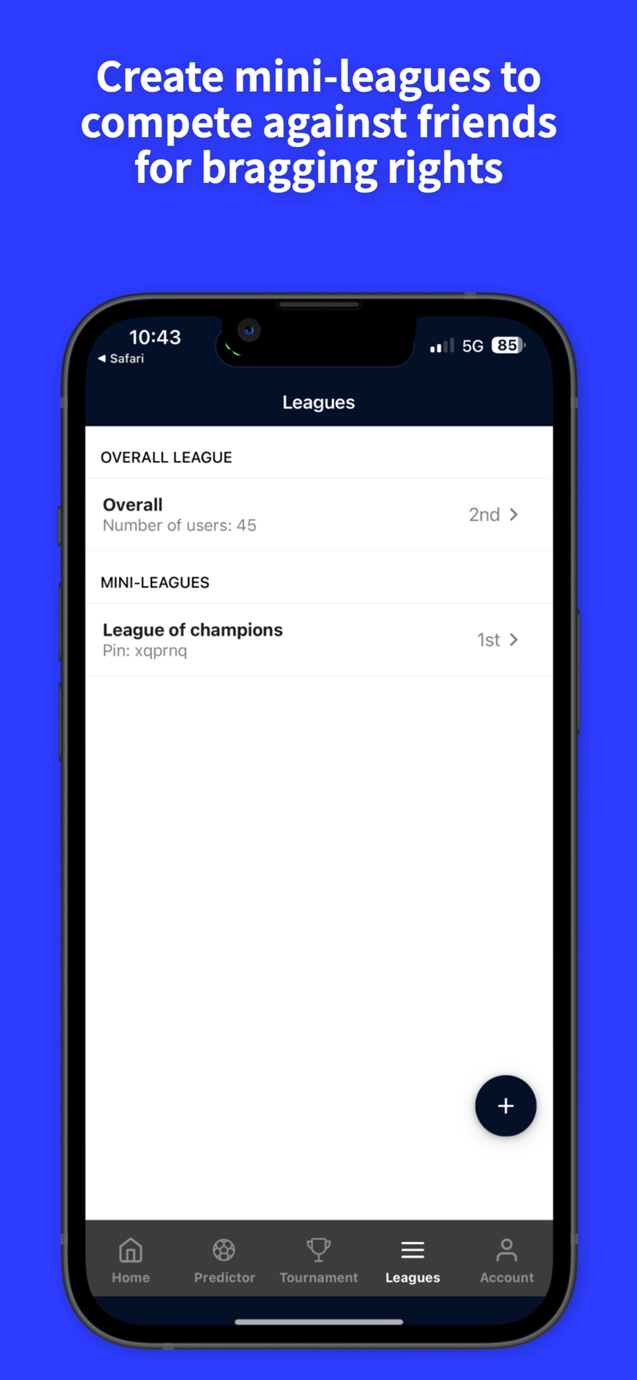 Craft your virtual leagues and forecast the match outcomes to accumulate points and challenge friends. Do you have the intuition to predict the champion team of the tournament?