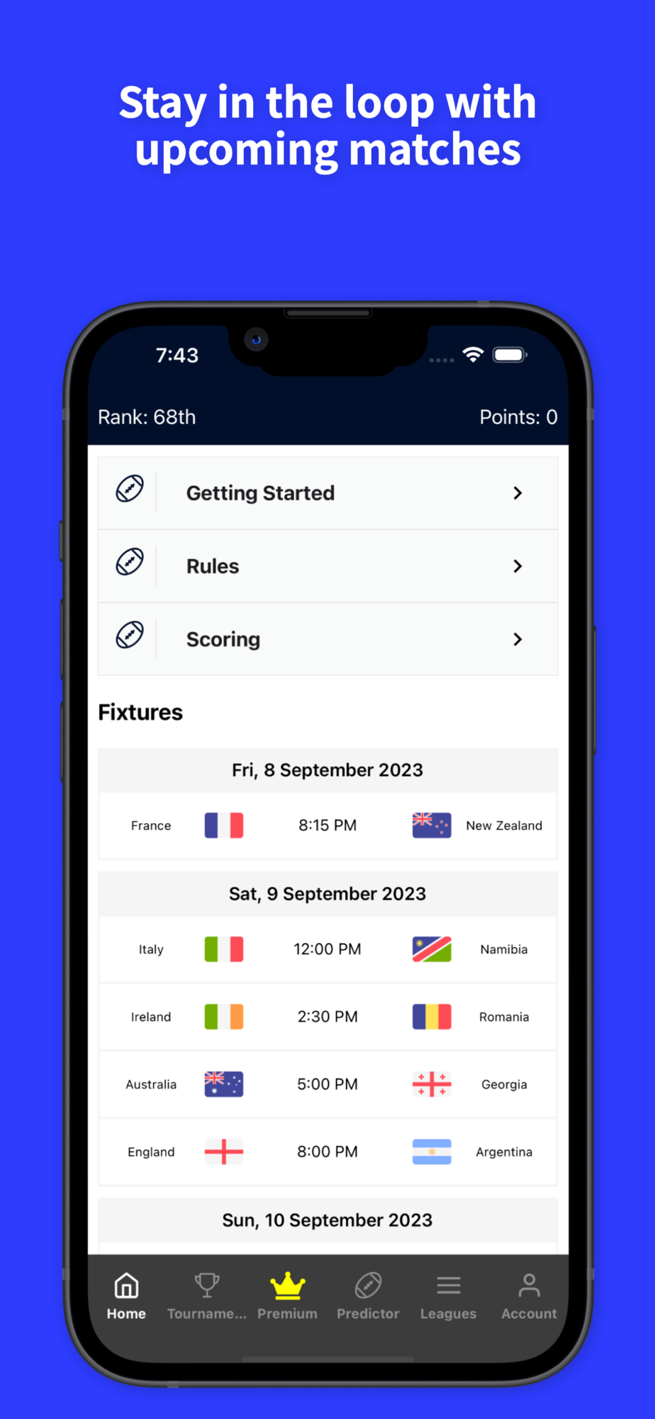 Stay updated and engaged with the thrilling Rugby World Cup through the Rugby Cup Predictor app. Whether you're a rugby fanatic or simply captivated by major international tournaments, this app is tailor-made for you.