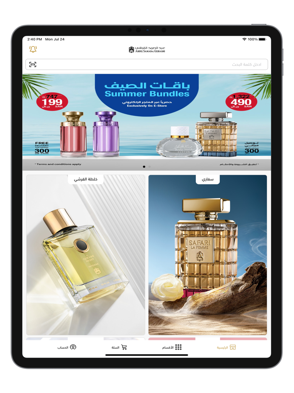تطبيق "عبدالصمد القرشي" " سادة العطر الملكي" يقدم مجموعة رائعة من المنتجات العطرية الفاخرة، بخاصة العطور والعود والبخور. يهدف التطبيق إلى توفير تجربة تسوق مميزة للمستخدمين، حيث يمكنهم اكتشاف واختيار المنتجات التي تلبي أذواقهم وتلبي احتياجاتهم الشخصية.
