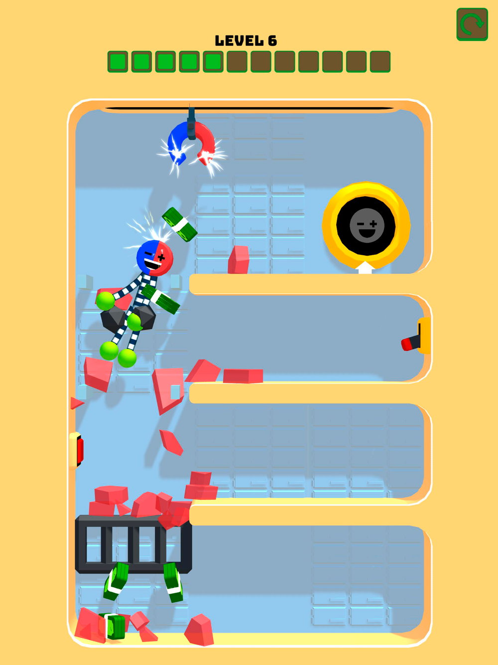 In this unique puzzle game, your task is to skillfully control the magnet by tapping the screen, magnetizing the character, and guiding them through intricate mazes. However, be cautious, as you'll need to avoid various obstacles to reach the exit!