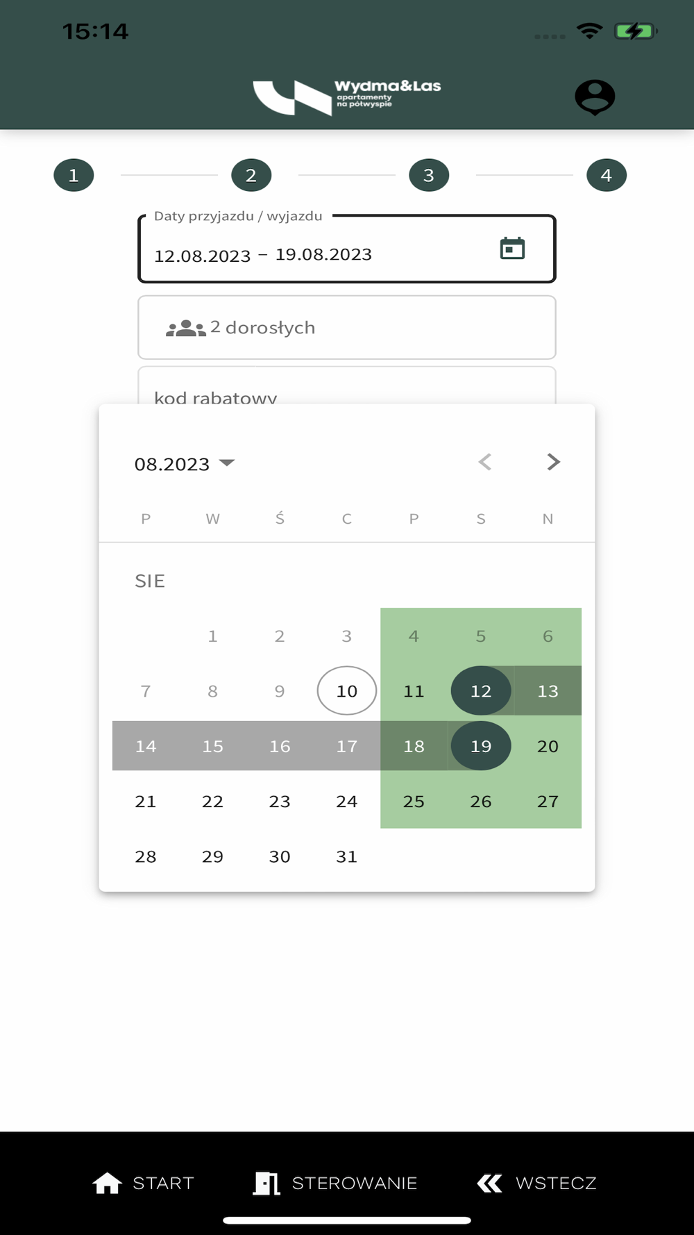 Aplikacja umożliwia wyszukanie i rezerwowanie pobytów w Wydma&Las.