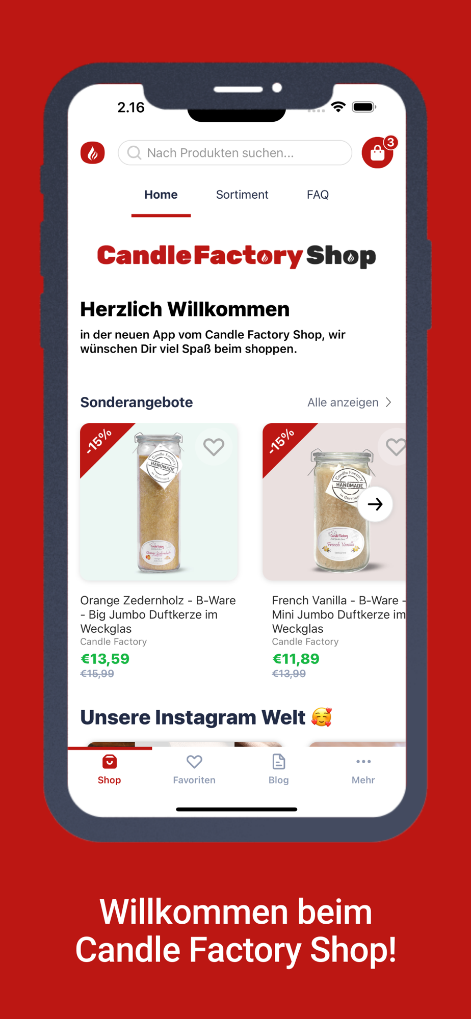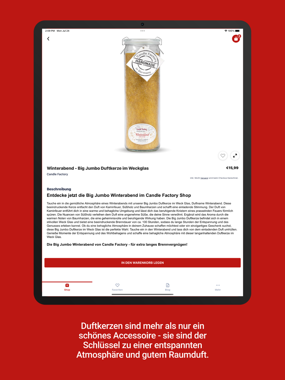 Hey, willkommen beim Candle Factory Shop! Hier hast du die Möglichkeit, direkt von deinem Smartphone aus, die besten Duftkerzen und Zubehör der Marke Candle Factory zu shoppen - ganz unkompliziert und ohne nervigen Browser.
