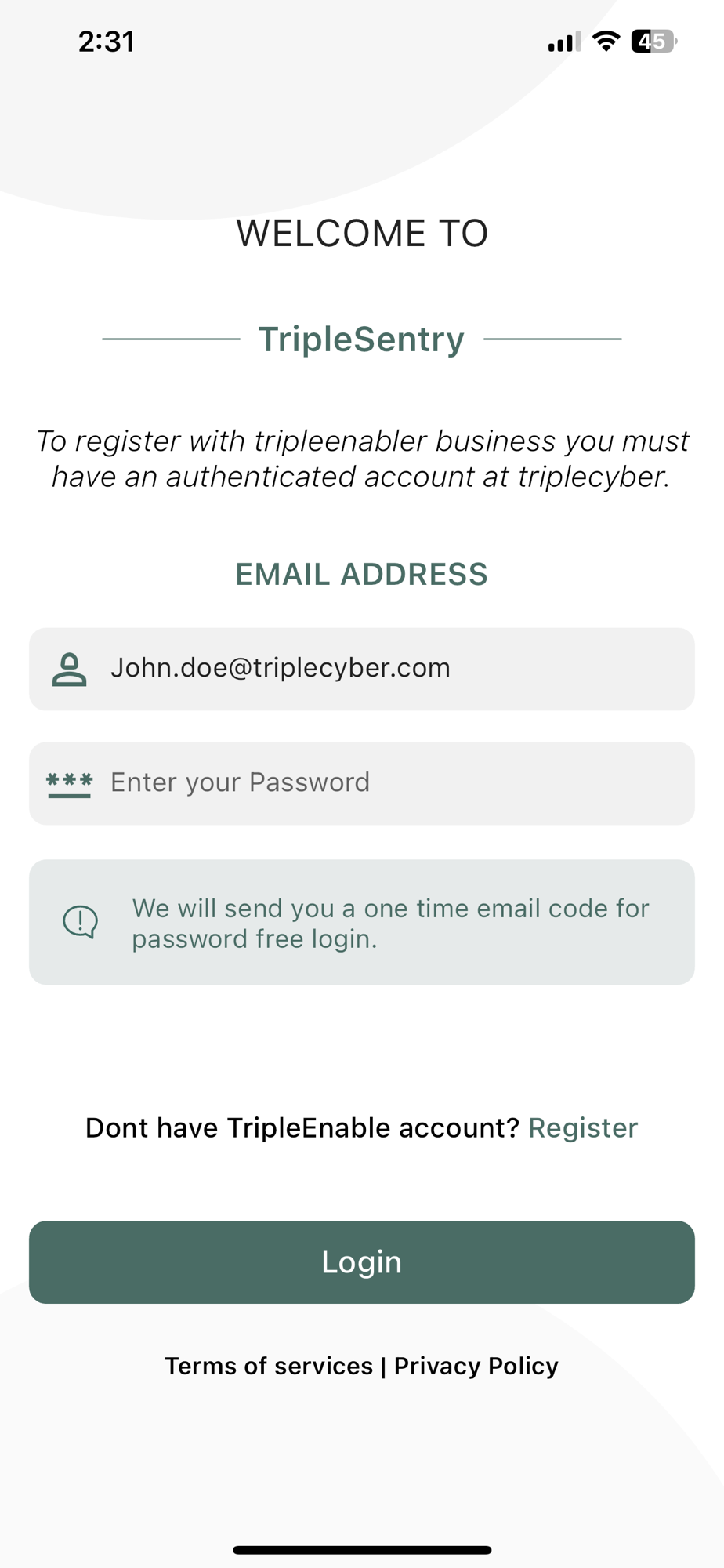 Authenticate with TripleSentry to Door Access and Login to TripleEnabler Ecosystem