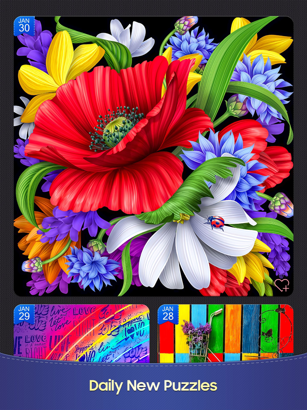 Daily puzzles, beautiful new puzzles are waiting for you every day.