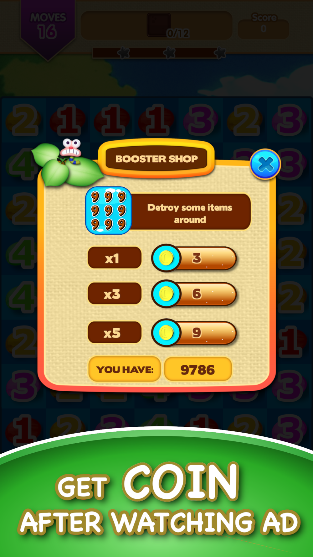 Get coins by watching advertisement videos and exchange them for powerful booster items to enhance your gameplay.