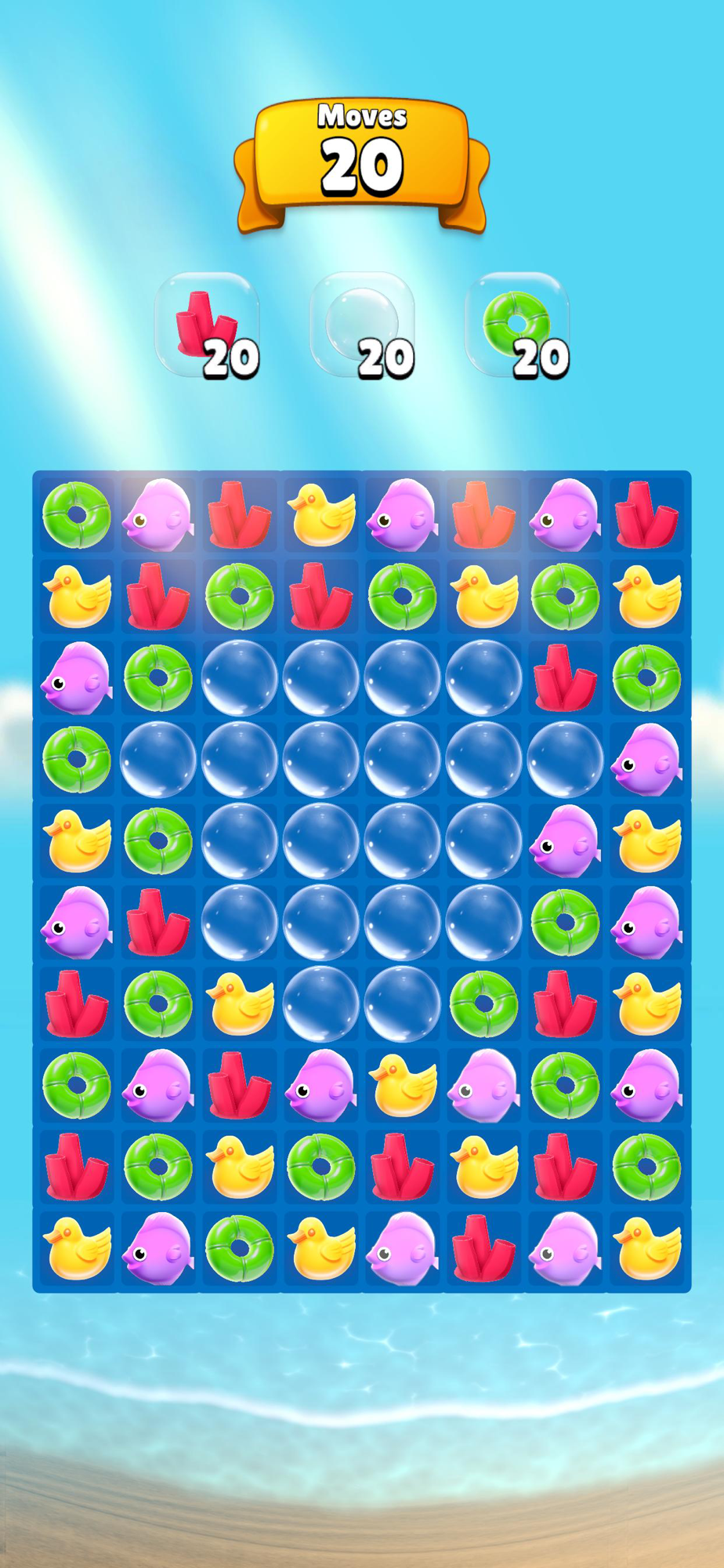 Summer Match is your summer puzzle game! Create rows or columns of three or more identical elements by sliding the board. Collect shells, starfishes, corals and other typical summer items. Each level has a unique goal to reach with a given number of moves. The more combinations you form, the more points and bonuses you earn!
