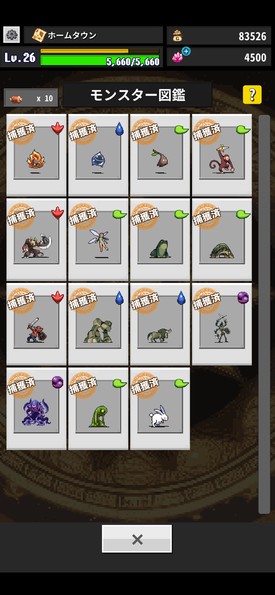 ボスを含む全ての敵が仲間になります。(闘技場というランキング用イベントステージの一部を除く)倒した時の0.3%で仲間になるなどの無謀にも思える確率を突破した時のカタルシスを全人類に感じて欲しいゲームです。