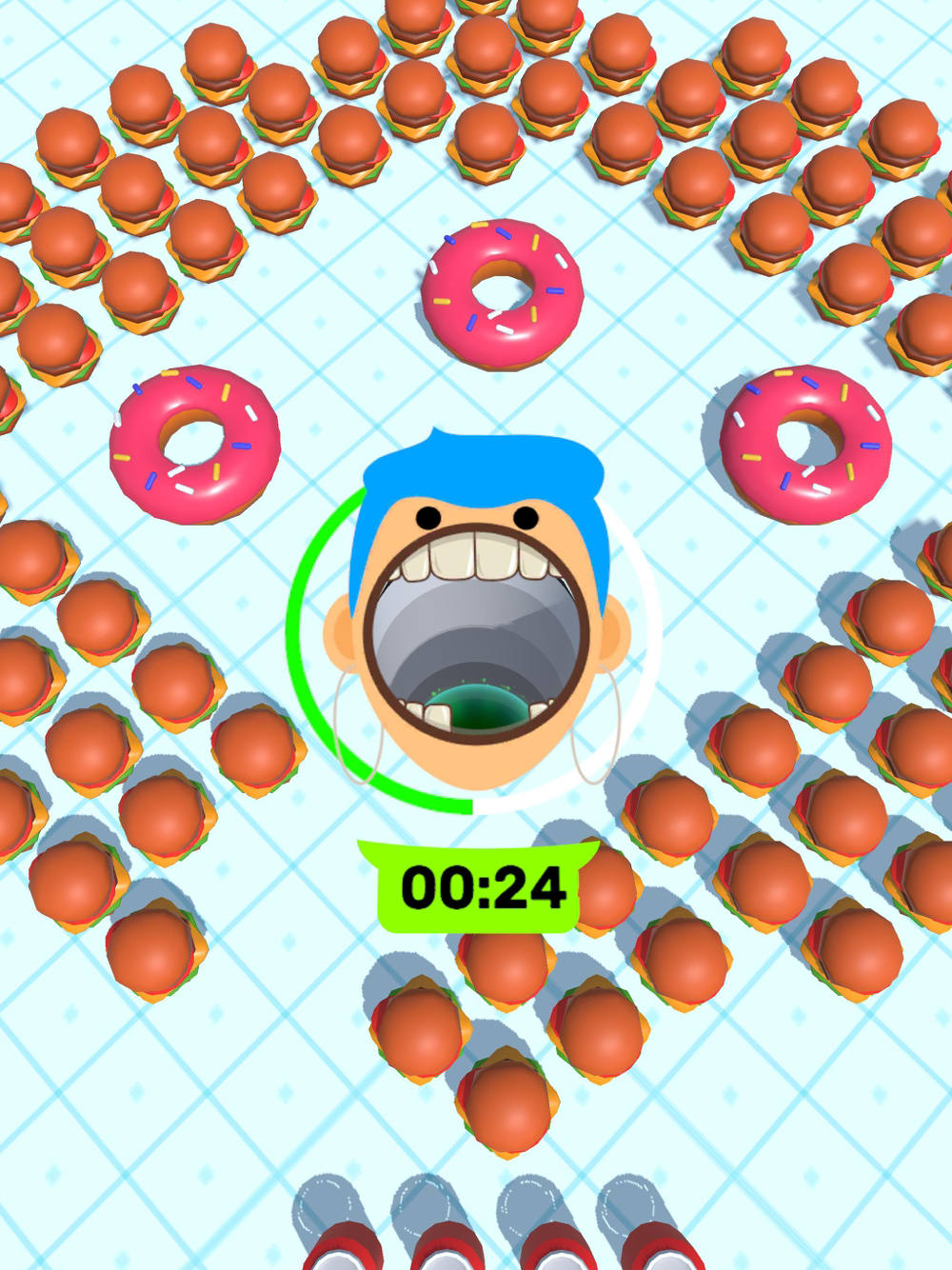 Cupcake, Donut, Hot Dog, Ice Cream, Pizza... As you gather these items within the time constraints, you will witness the black hole expanding, signifying your growing power. Be carefully! Time is running out.
