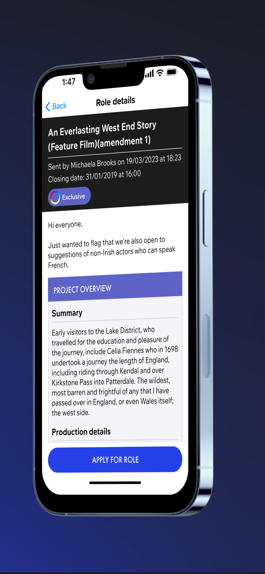 With nearly a century of experience, we've been the trusted link between exceptional performers and the industry's most influential casting experts. Being a Spotlight member means you're recognised as a consummate professional, possessing the precise skills and experience that casting directors and project creators crave. It's no wonder they turn to us for casting roles in film, theatre, commercials, voiceovers, and TV.