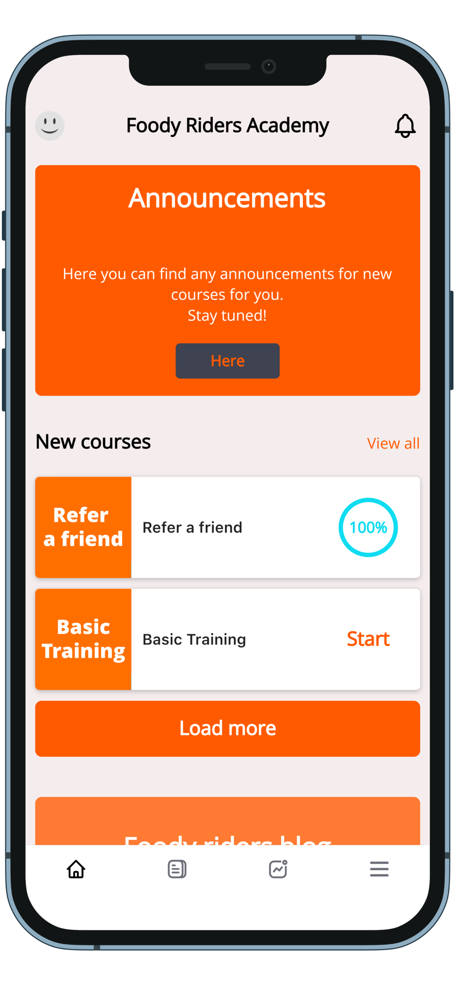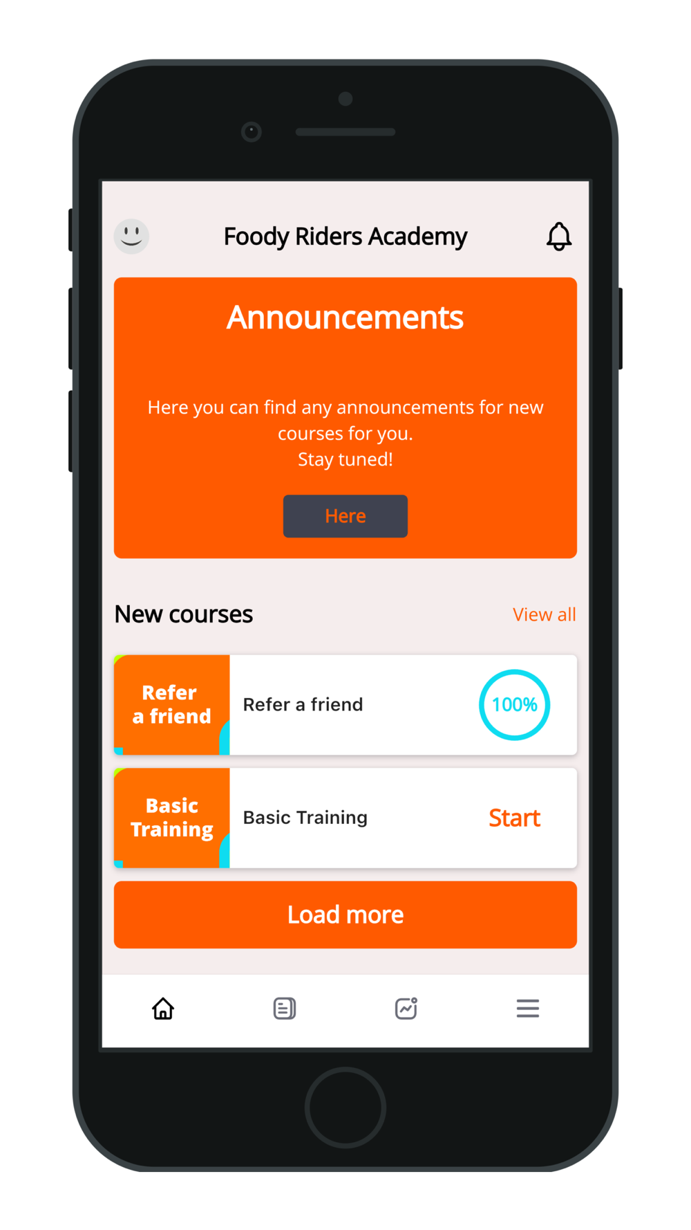 Foody riders Academy app is here for to support you and via this app you have at any time access to all trainings that you may need.