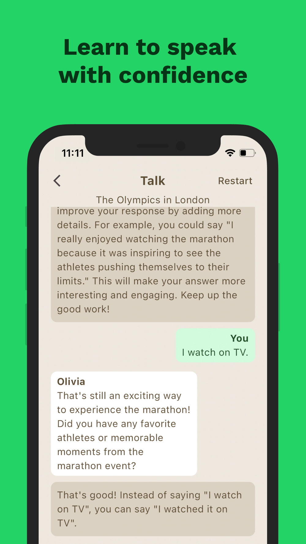 Zaplingo offers instantaneous feedback—an essential aspect of learning languages. Our AI provides prompt feedback on your language use, iterating insights to elevate your English language learning journey.