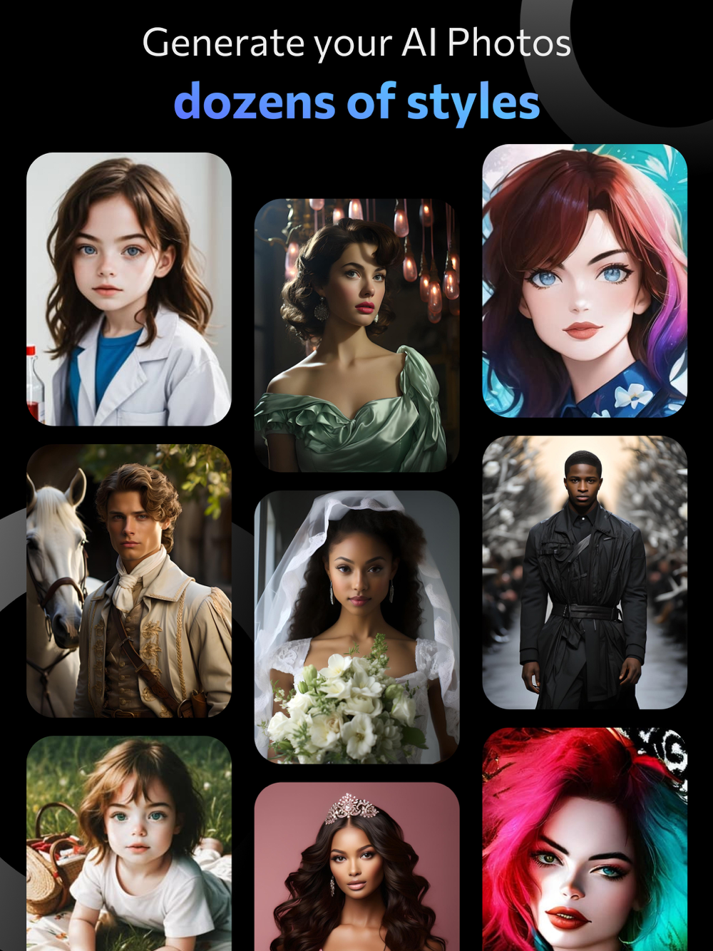 Have you spent a lot of money to shoot your own personal portrait profile? Use our Profile AI app to generate a variety of profile photos with one tap, such as 90s throwback with ai yearbook, LinkedIn headshots, Tinder profile, AI Photoshoot and so on.
