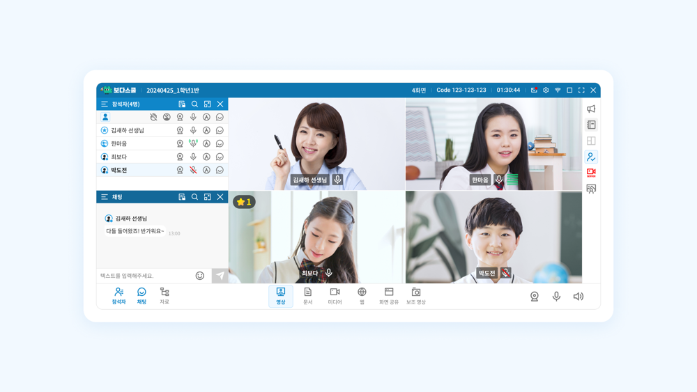 선생님이 교실수업 중 학생들의 전자필기를 한눈에 보며 관리/코칭하는데 효과적인 학습 지원 도구입니다.