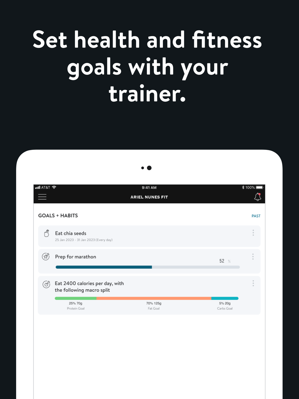 Ariel Nunes Fit makes it easy to monitor your progress and celebrate your achievements. The app allows you to track your workouts, record your nutrition, and log your measurements, providing you with valuable insights into your journey. You'll have access to data-driven analytics and visual progress charts, enabling you to see your improvements and stay motivated as you reach new milestones. You have the ability to connect your Apple Watch, Apple Health App, Fitbit, or Garmin to help track your progress. The In-App meal tracker is also awesome to help you achieve your macro and calorie goals. I also help find your personalized macro count so you do not have to figure this out yourself!