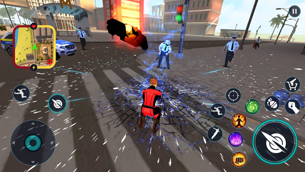 Police agents needs you to fight with gangsters as they are also destroying the city like super villains. Choose your favorite super hero gun and take part in gangster fights. Stop the robbers as civilians needs your help. If you want to explore the city use your flying powers or drive any vehicles in the city also perform stunts.