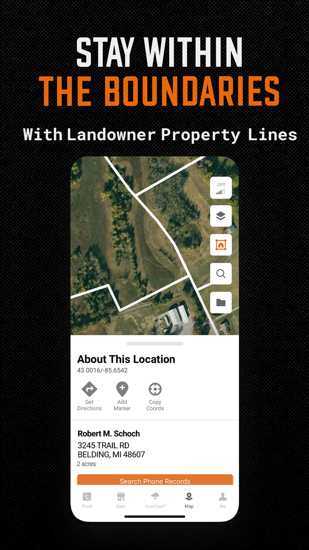 Tap anywhere on our hunting maps to see the name, address, and phone number of the landowner, and more easily gain hunting access or permission to retrieve your harvest.