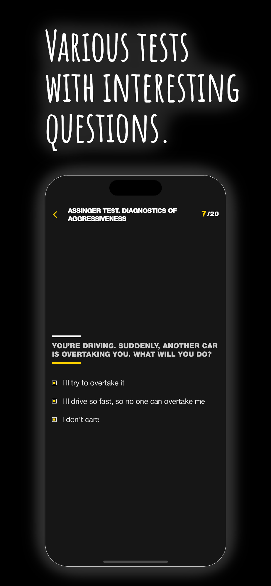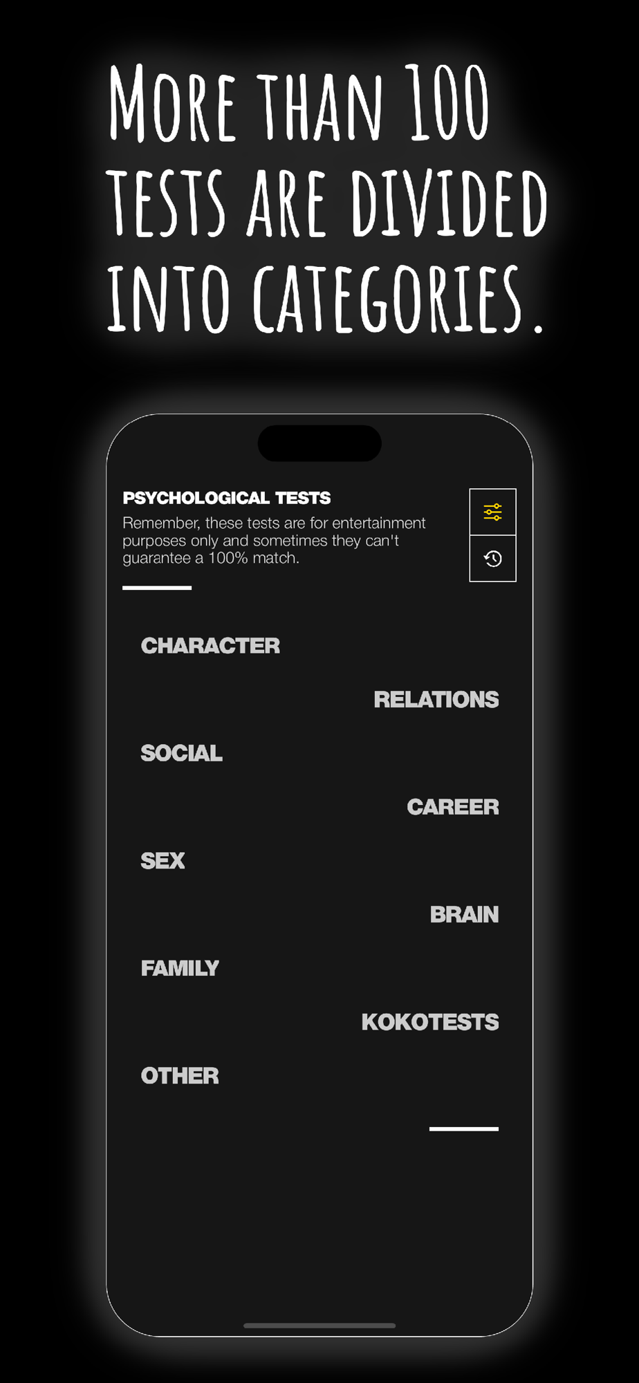 Take a look at the app and find out the best aspects of your character, whether your nerves are in order, or more about your relationship with the opposite sex. We have more than 100 tests divided into 9 categories, and here are the most interesting ones: