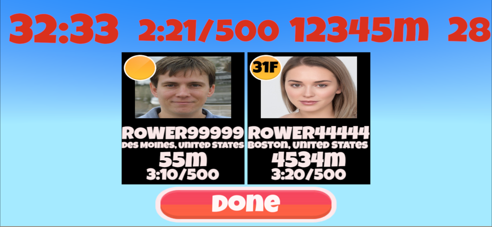 Arcade Rowing connects to the PM5 on your rowing machine to row socially, play games and track your progress. See rowers from around the world in real time as you row. Compare your efforts to others. See how you rank and see other's workouts. Also, new rowing games unlike anything you've seen before. Shoot enemies by pulling hard and race against enemies! Choose a simple track or immersive virtual worlds! Also choose to simply see a display of everyone rowing along with their photo, location, age, distance and pace.... its a virtual rowing arcade on your device!