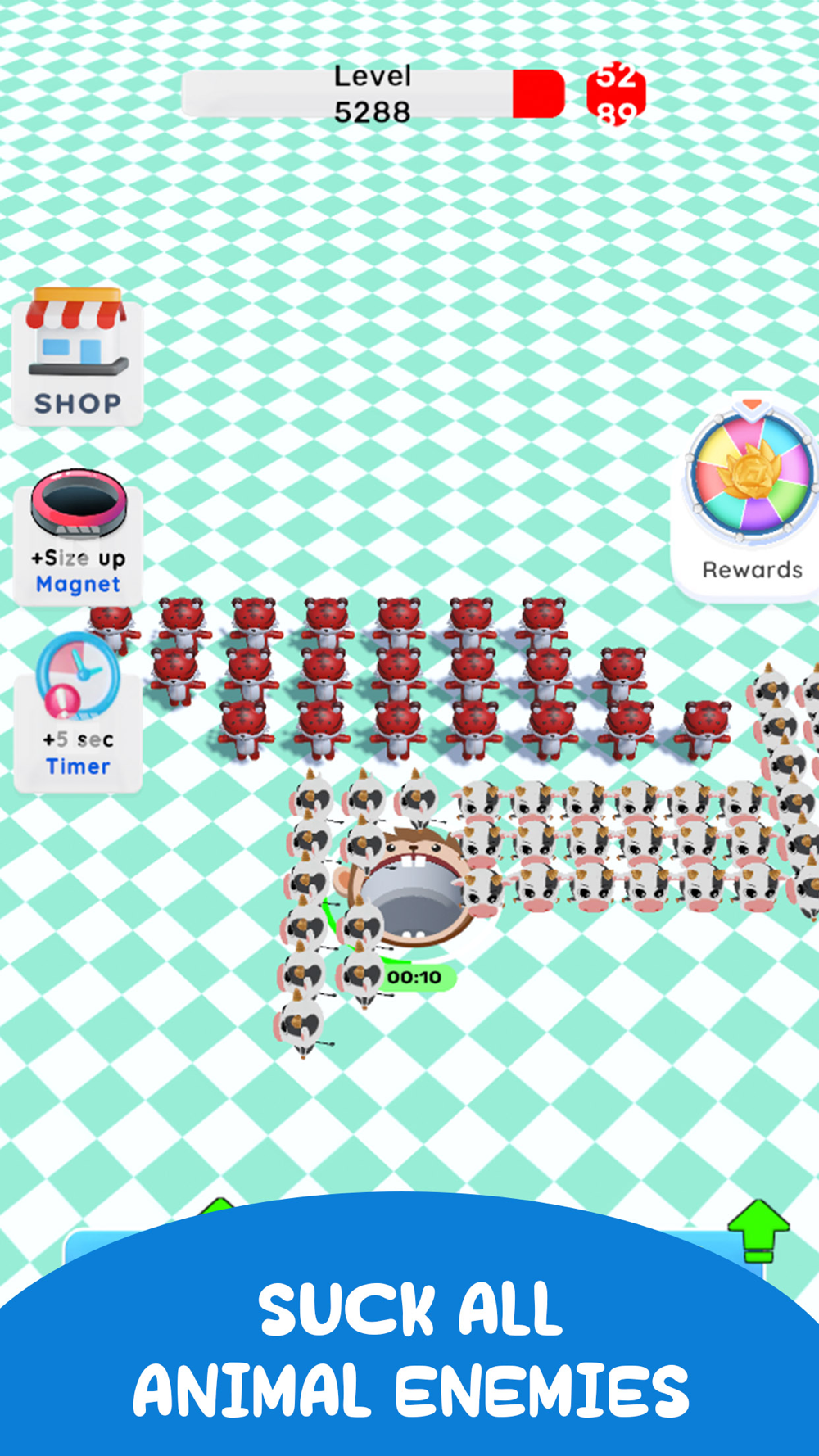 In Black Hole Attack 3D, your goal is to take control of a black hole and devour various cartoon animals, including rabbits, cows, and tigers, among others. When you consume these items, your strength increases, allowing you to wipe out even the most formidable foes. Get ready to unleash your inner hoarding master and leave the path of destruction as you pass through the challenging levels.