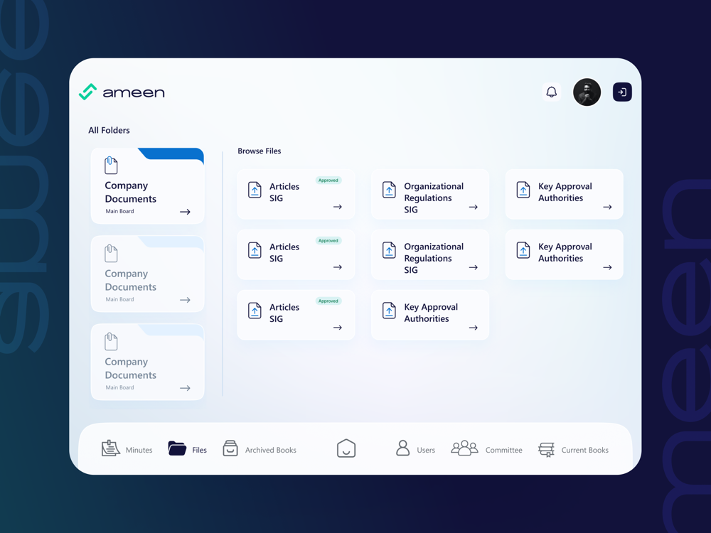 Ameen Board is an app that allows you to register meeting minutes. The app is designed to help you keep track of your meetings and ensure that all important information is recorded. With Ameen Board, you can easily create and manage meetings, add participants, and record minutes. The app also allows you to set reminders for upcoming meetings and send notifications to participants.