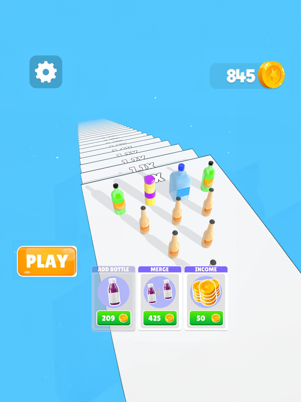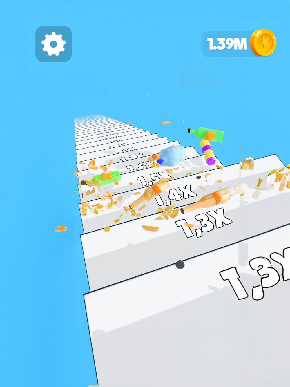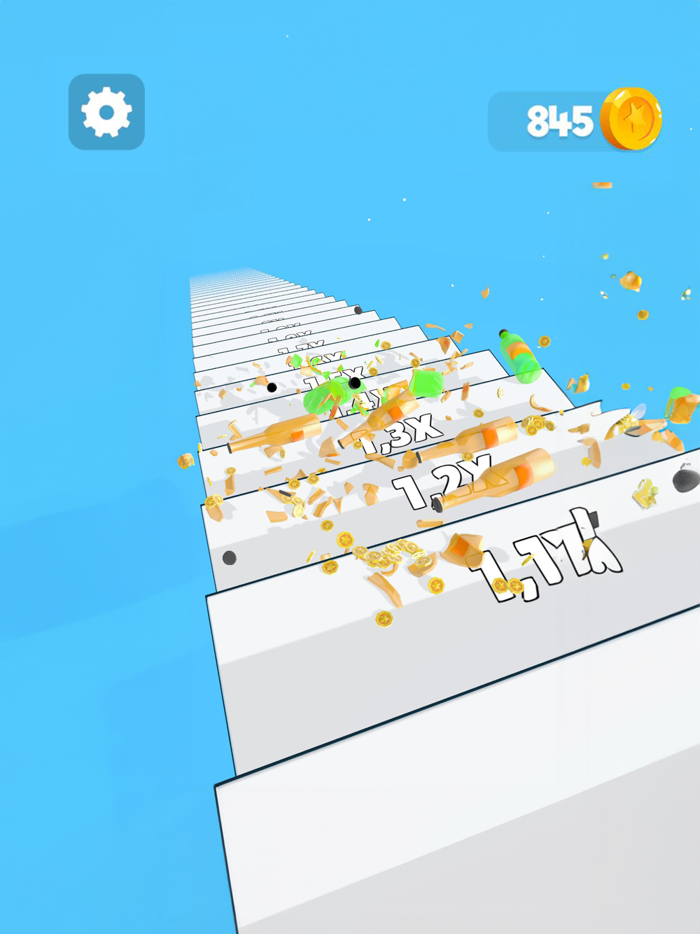 Watch the bottles shatter as you skillfully guide them down the stairs. Break them into countless pieces to earn points and rewards. But that's not all! Merge the shattered bottles to create stronger and more durable ones. The more you merge, the further down you can go, earning more rewards and bonuses along the way!