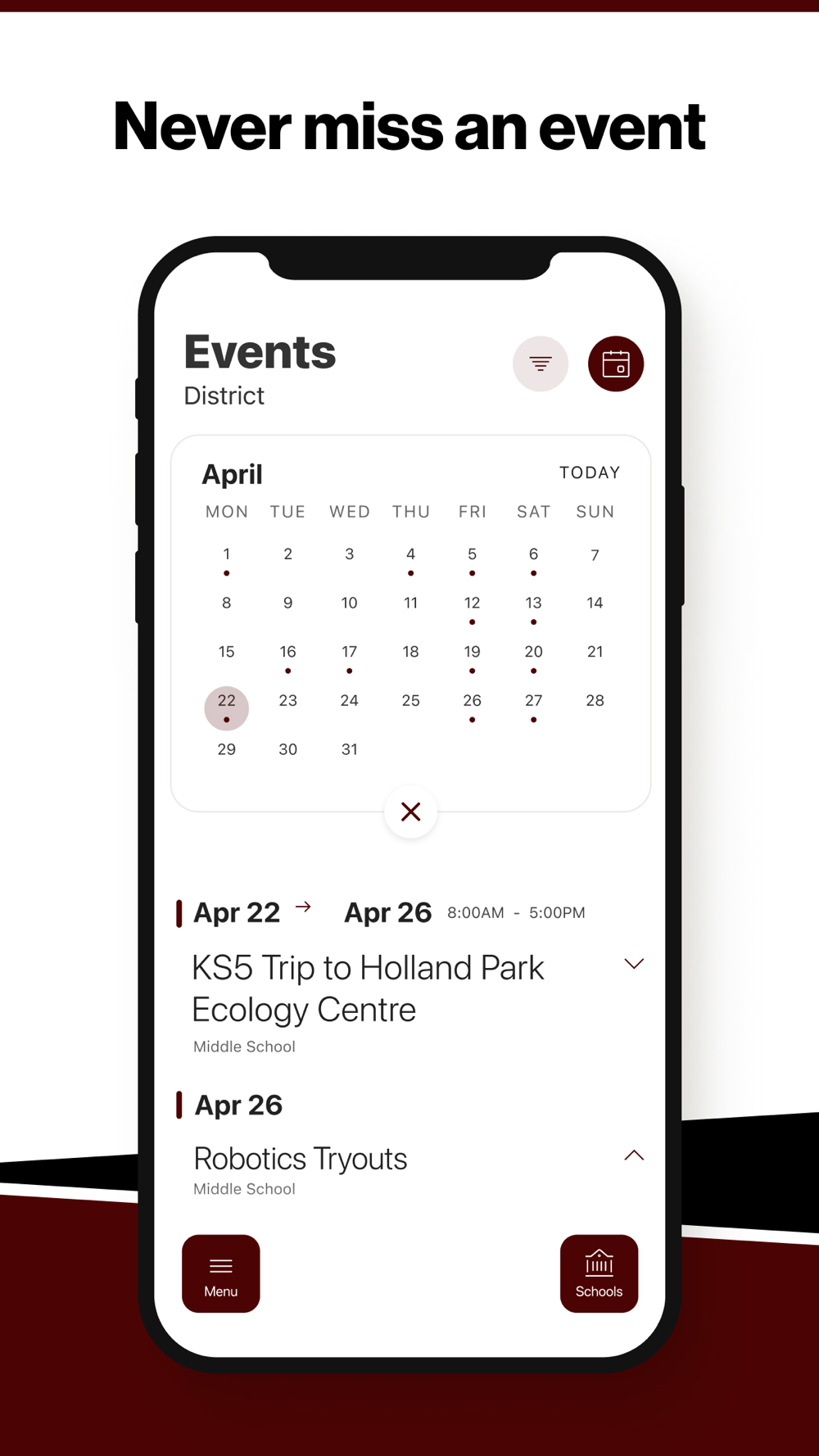 NEVER MISS AN EVENT