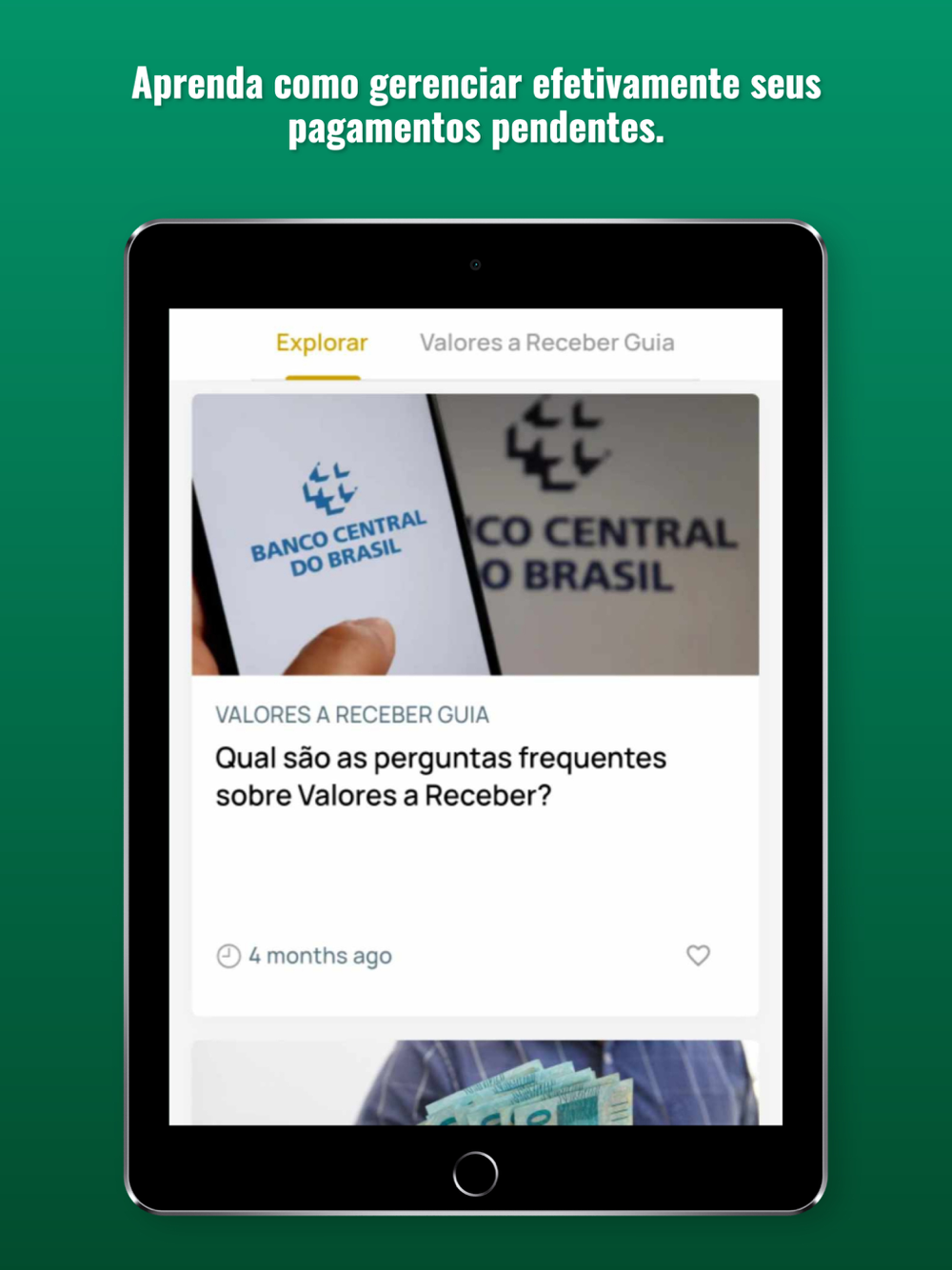 Nossa plataforma foi projetada para facilitar a consulta e oferecer uma experiência intuitiva. Visite valoresareceber.bcb.gov.br para obter suporte em suas atividades financeiras, explorar recursos e acessar guias completos para o ano de 2023.