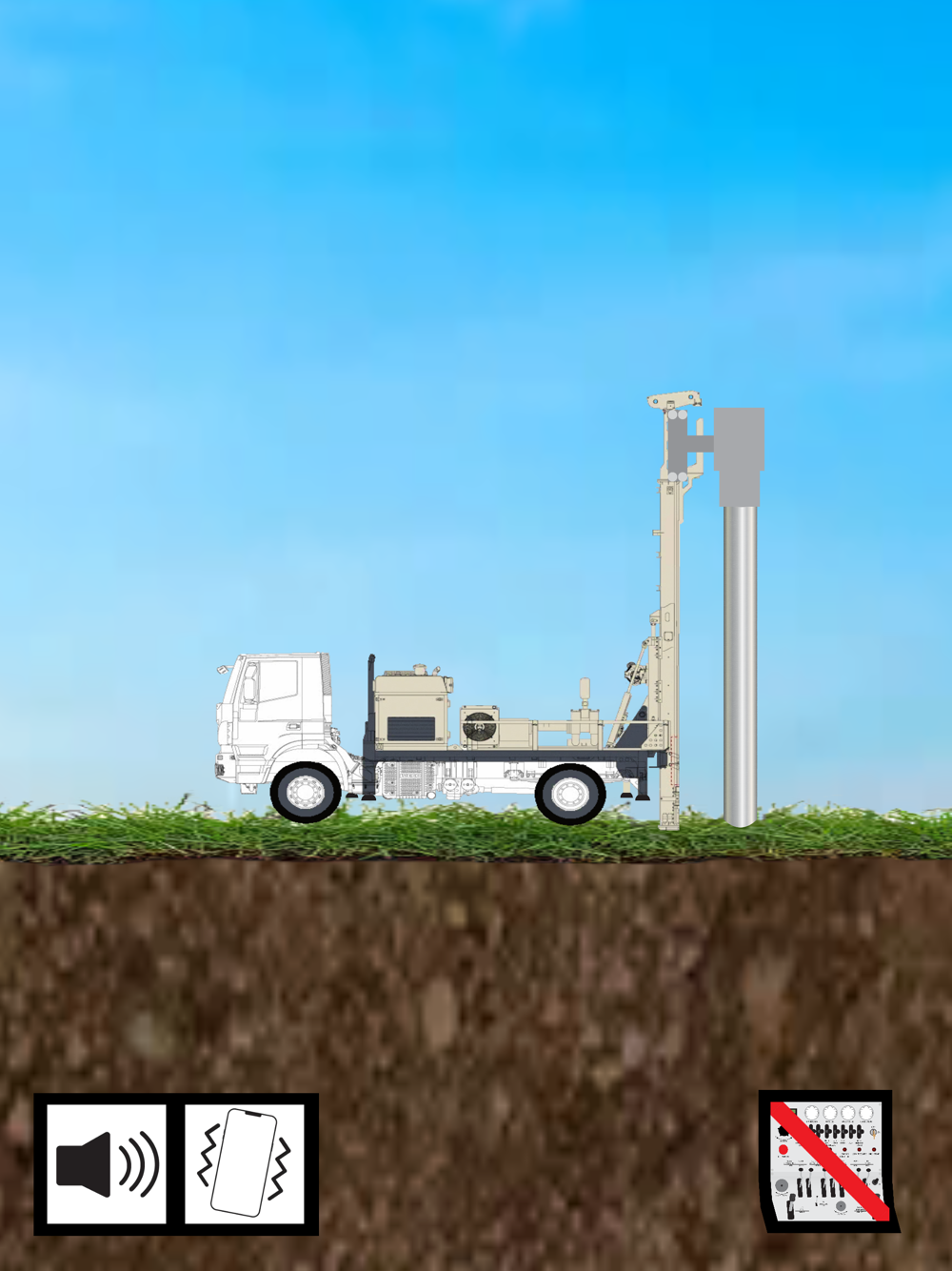 Control a truck-mounted drill rig that is equipped with a Sonic Oscillator. Use the oscillator to get past tough rocks in the ground. Do you have the skills to operate this rig?
