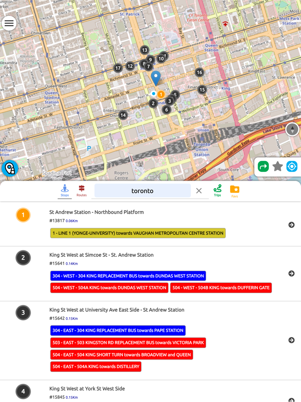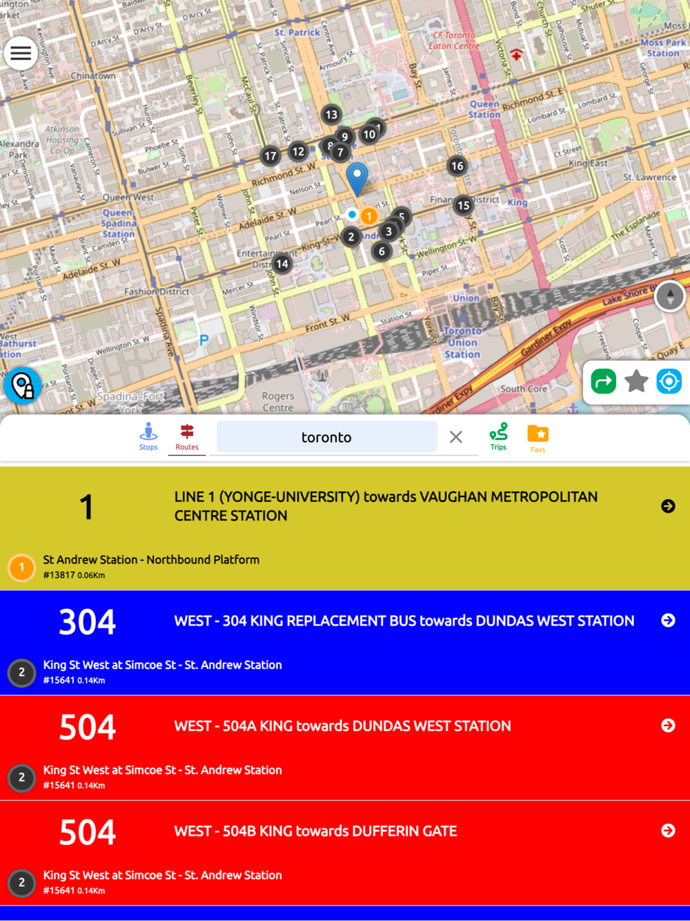 GTA Transit - Greater Toronto Transit Real Time App Offers Following Features: