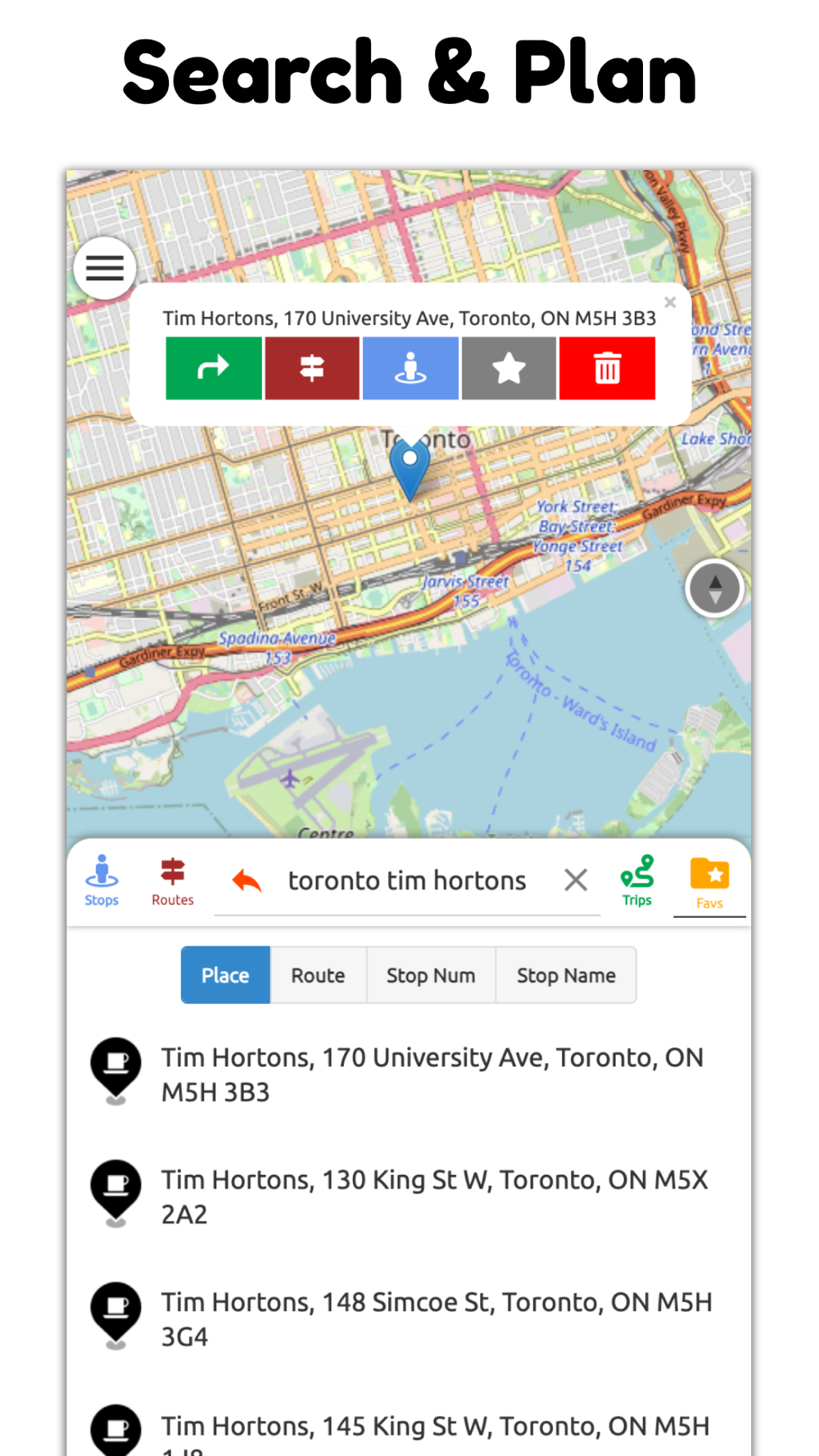 - Favourite your stops and places