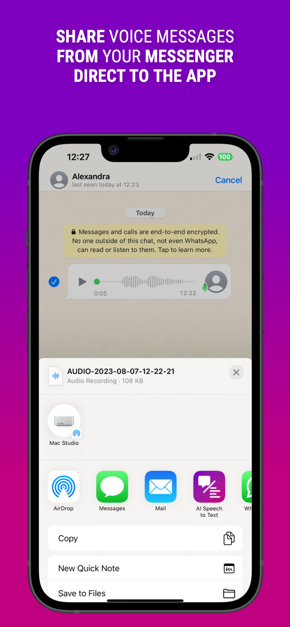 - Seamless Sharing: Directly share audio messages from popular messaging platforms like WhatsApp, iMessage, and more without any hassle.