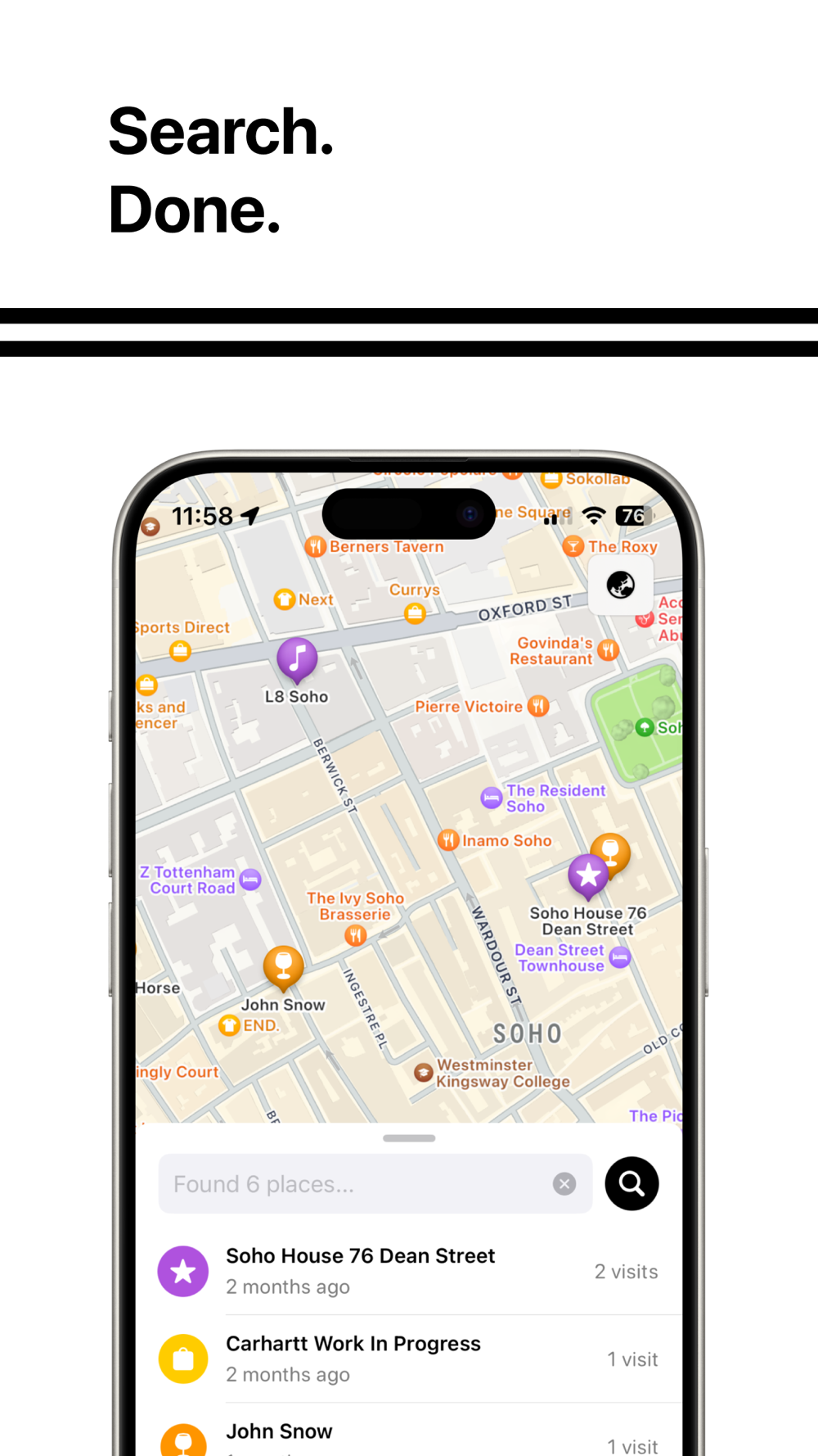 Track all the places you have been. Forgot that one place you went to on your trip? Find it easily with Marauder's intuitive search features.